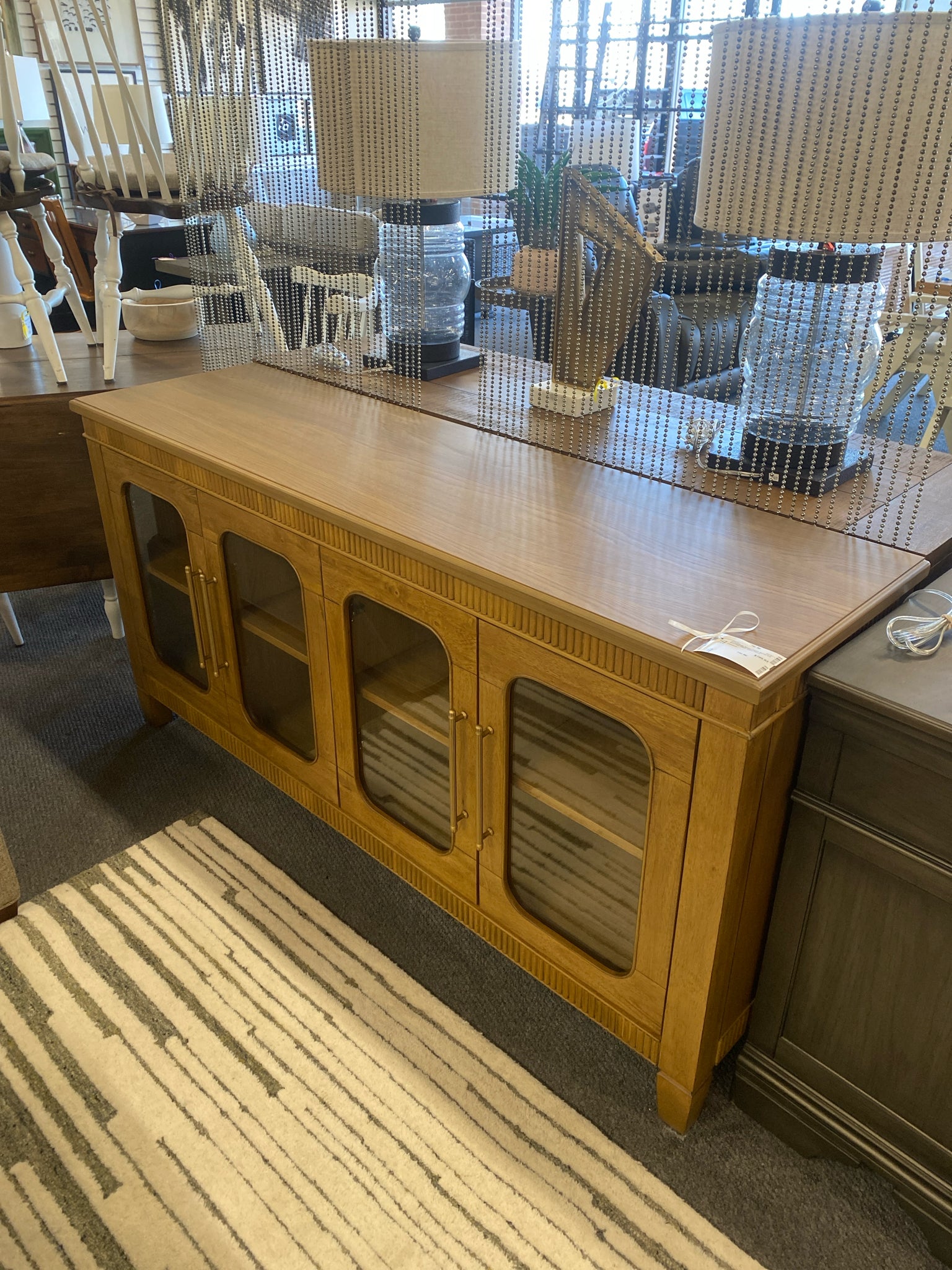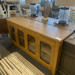 RES500NSV Brown Finish Server w 4 Rounded Glass Insert Doors