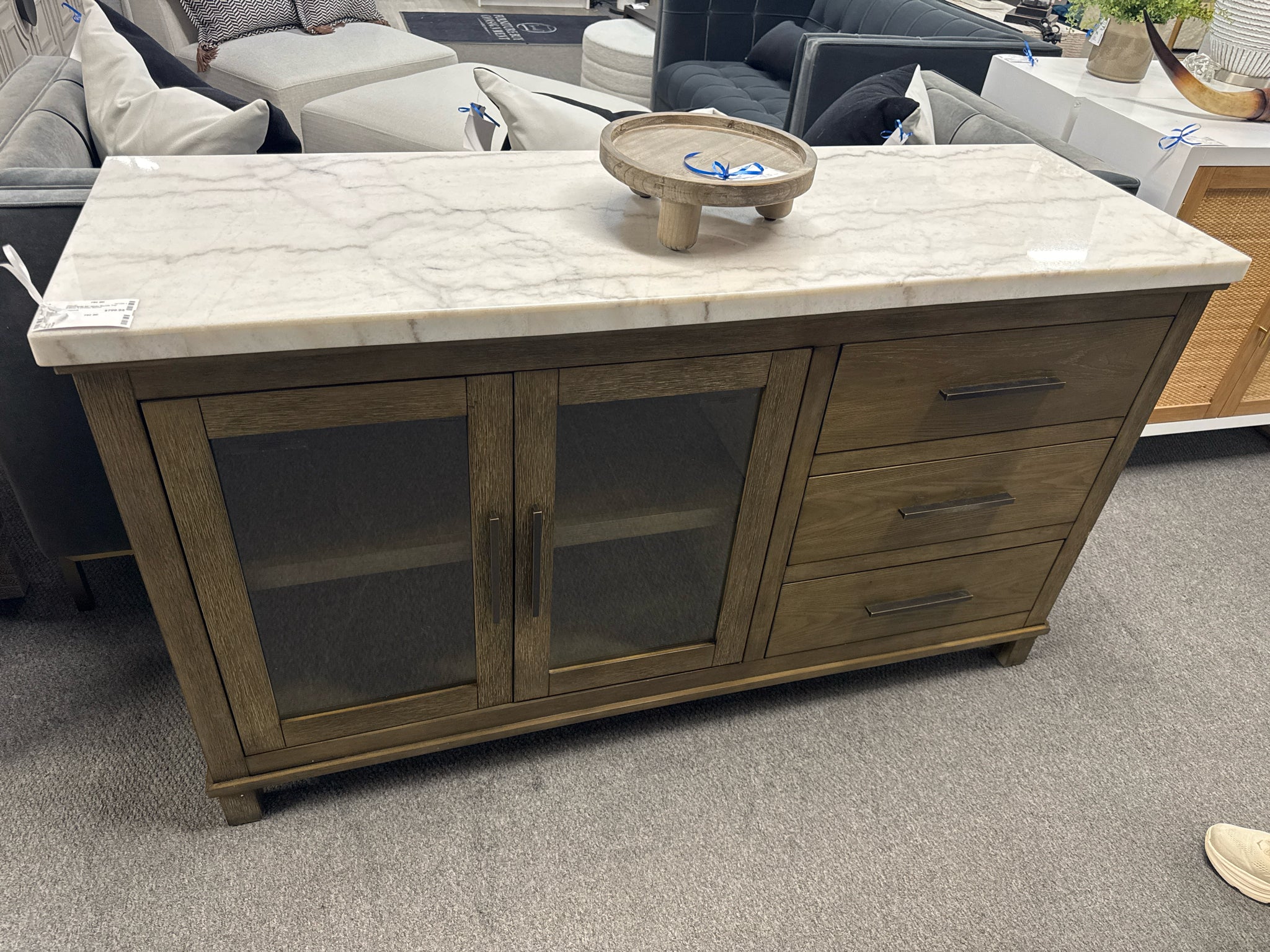 GS640SVW 60" White Marble Top 2-Door 3-Drawer Server