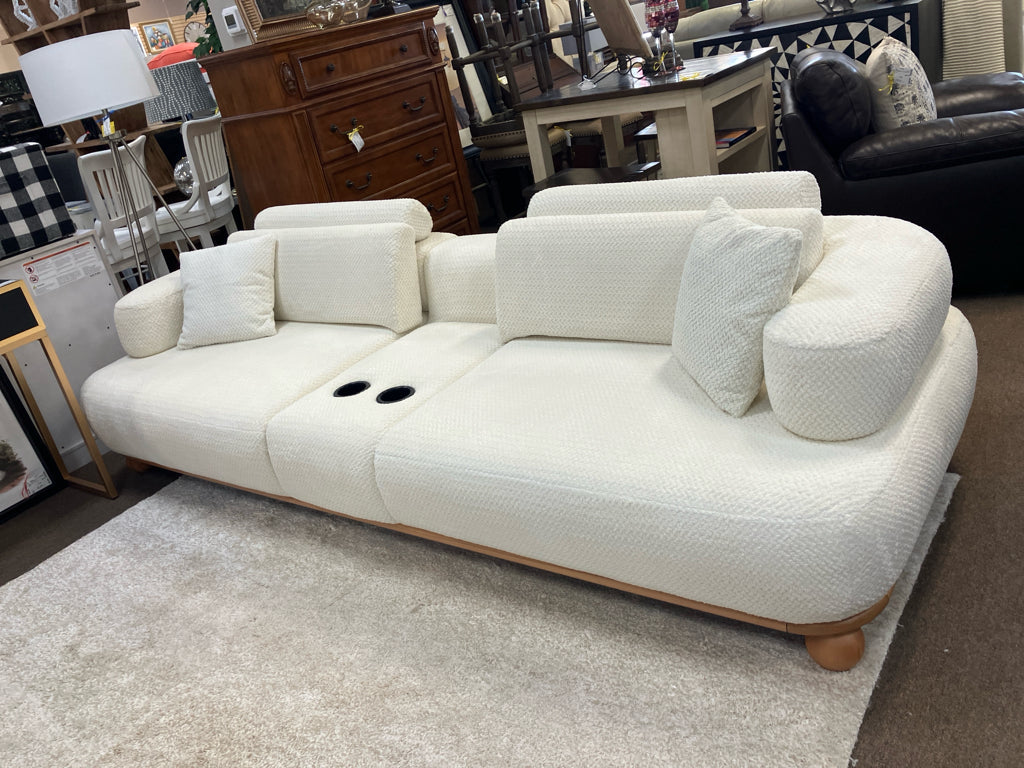 LAY950S-112"W ULTRA-SOFT BOUCLE CROSSHATCH FABRIC SOFA W/CONSOLE &2/PILLOWS