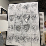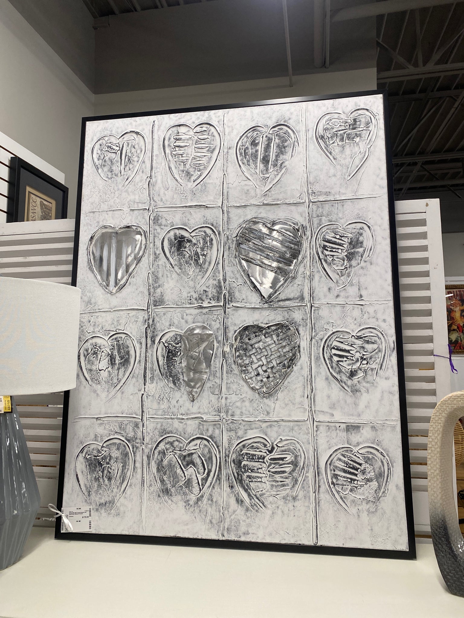 70145 36W 48H Framed Hearts and Hand Gray Abstract Canvas
