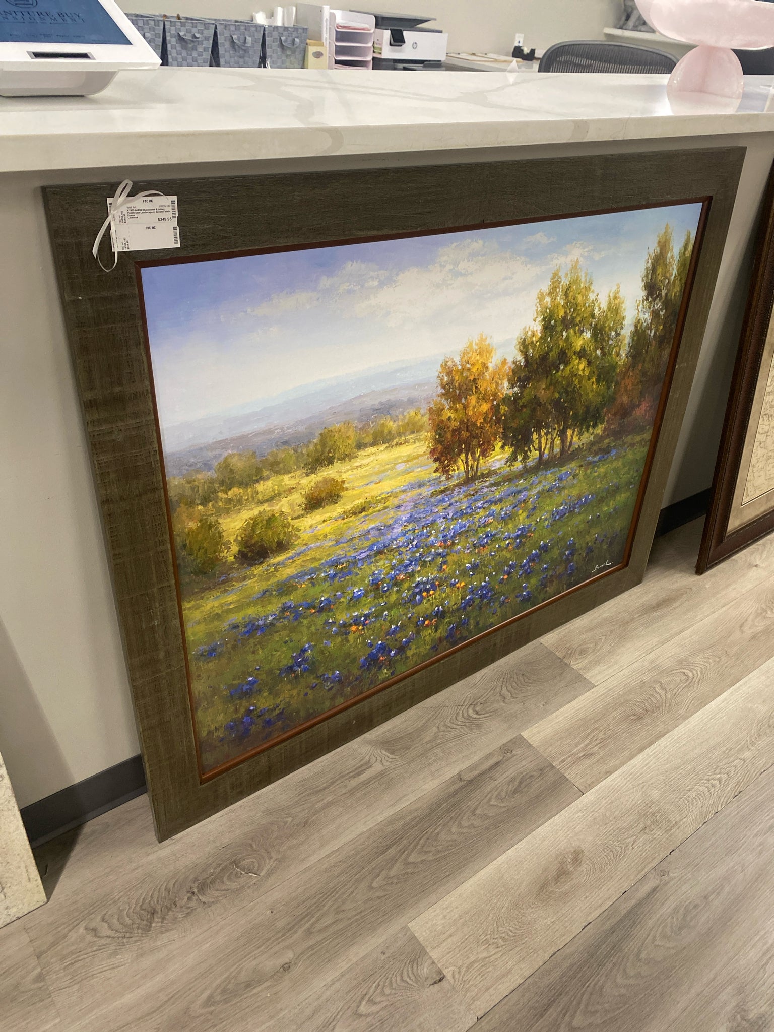 K1975 44X56 Bluebonnet & Indian Paintbrush Landscape in Brown Finish Frame