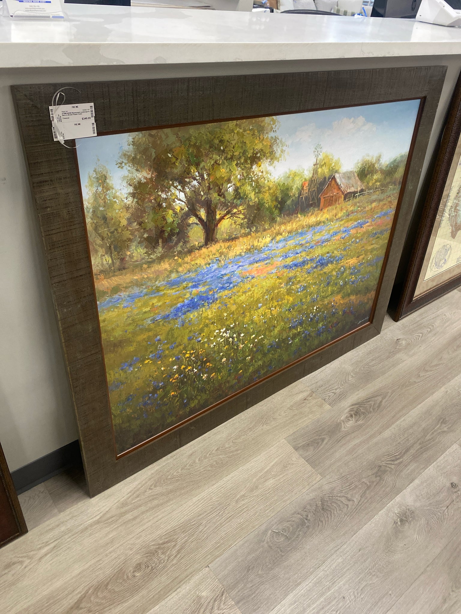 K1689 44X56 Bluebonnet Landscape w Barn in Brown Finish Frame
