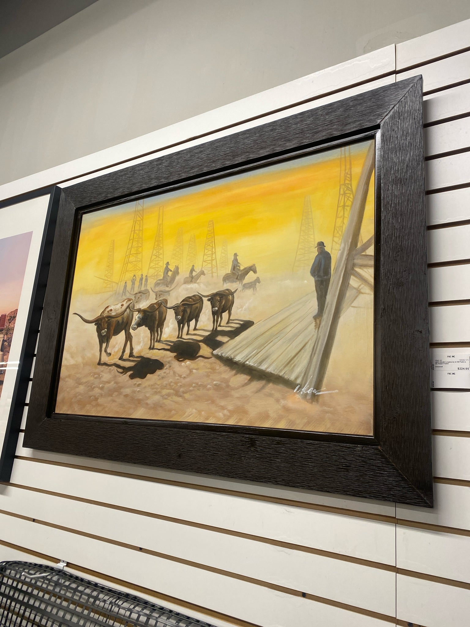 H672 32x44 Longhorns in Oil Field in Dk Finish Frame