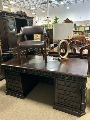 TUCKER DOUBLE PEDESTAL EXECUTIVE DESK IN RICH BROWN W/CHAIR 72W 34D 31H