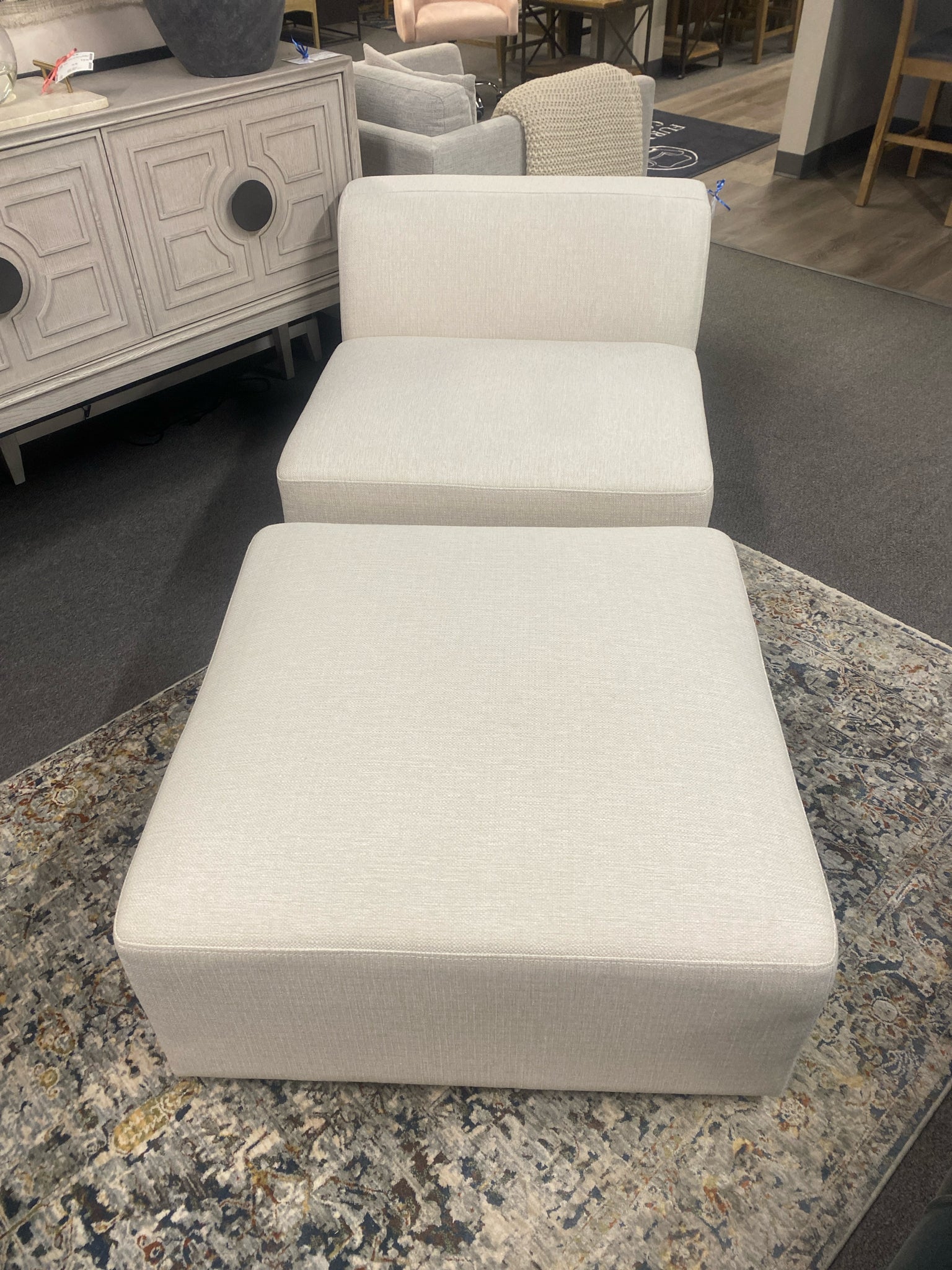 Deonte Upholstered Tight Back Armless Chair w Ottoman