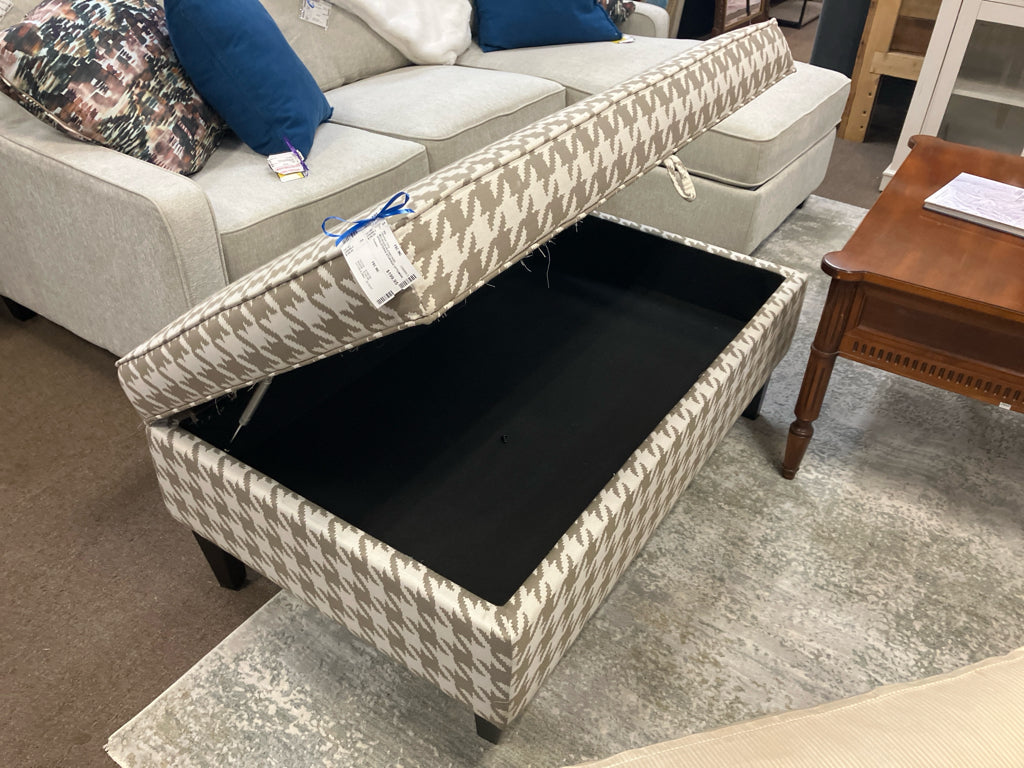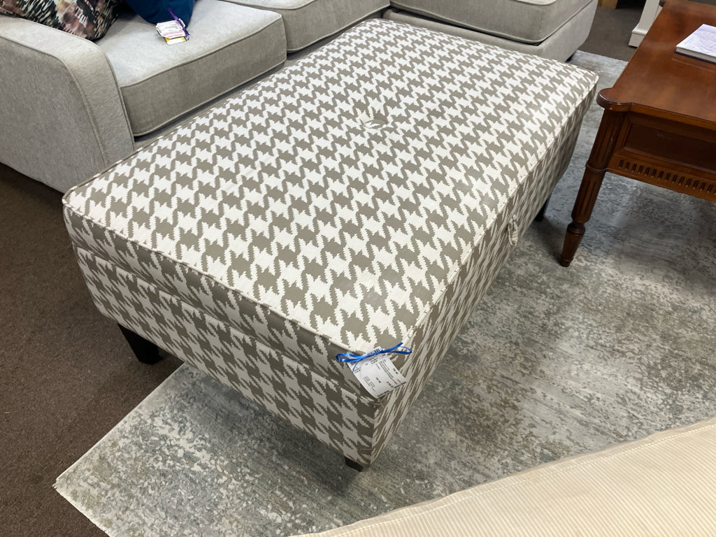 MCLOUGHLIN-CHECKED UPHOLSTERED STORAGE OTTOMAN