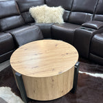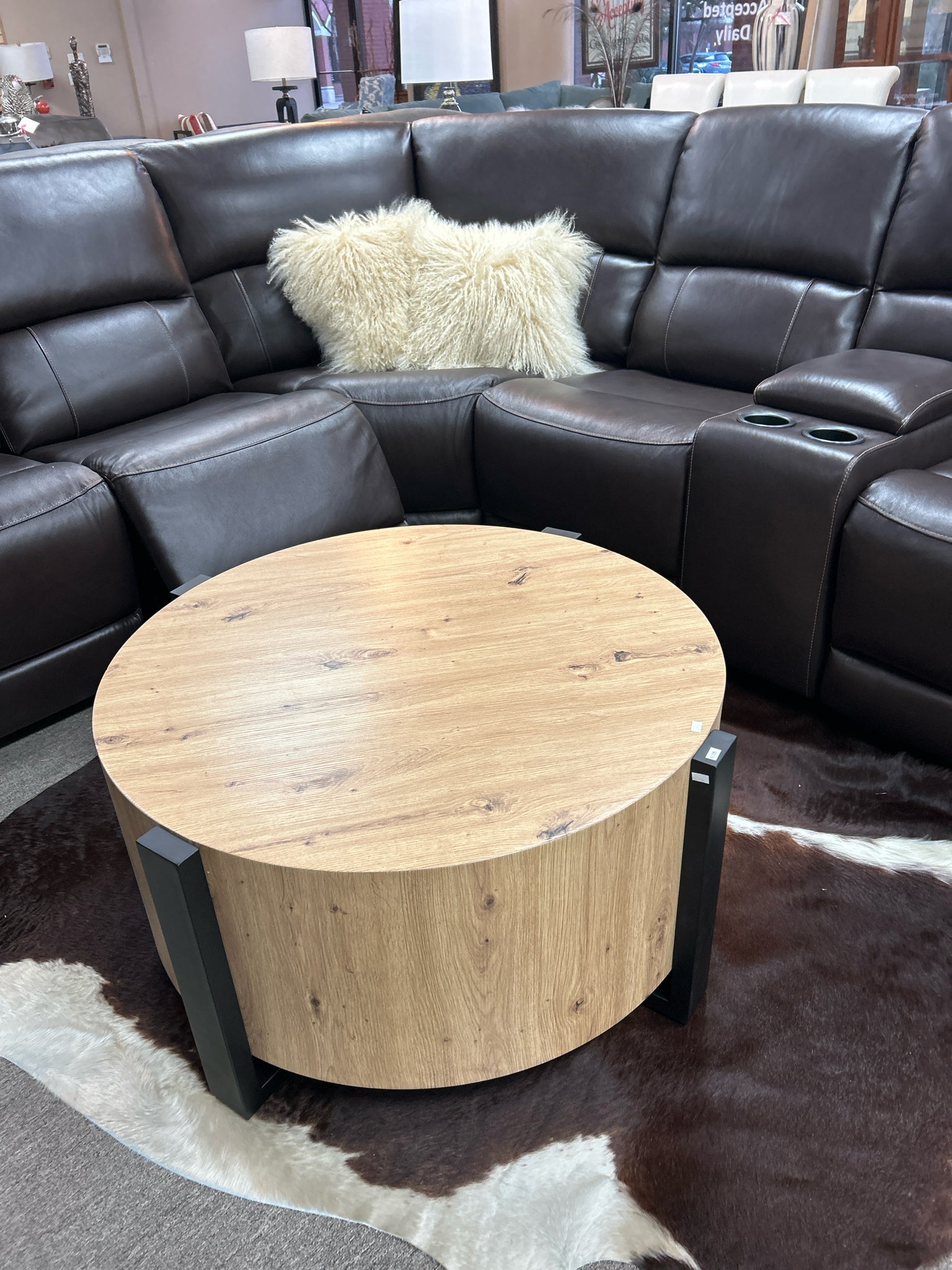 DR200RC 36" Round Wood Coffee Table with Black Iron Legs. 18" tall