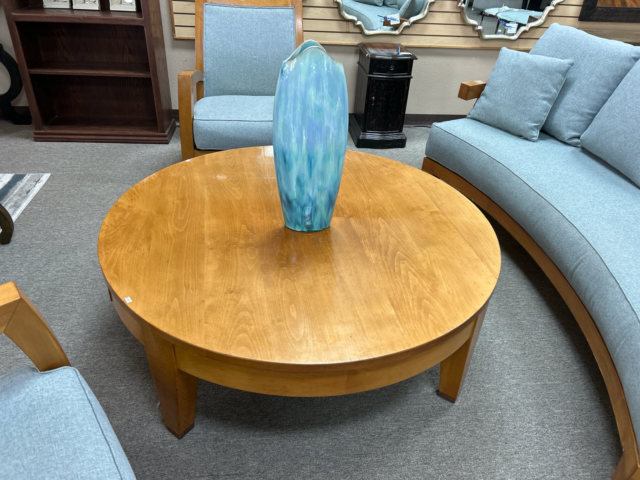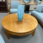 AS IS- 51" Round Light Wood Coffee Table. 18" tall. (Wear on top area.)