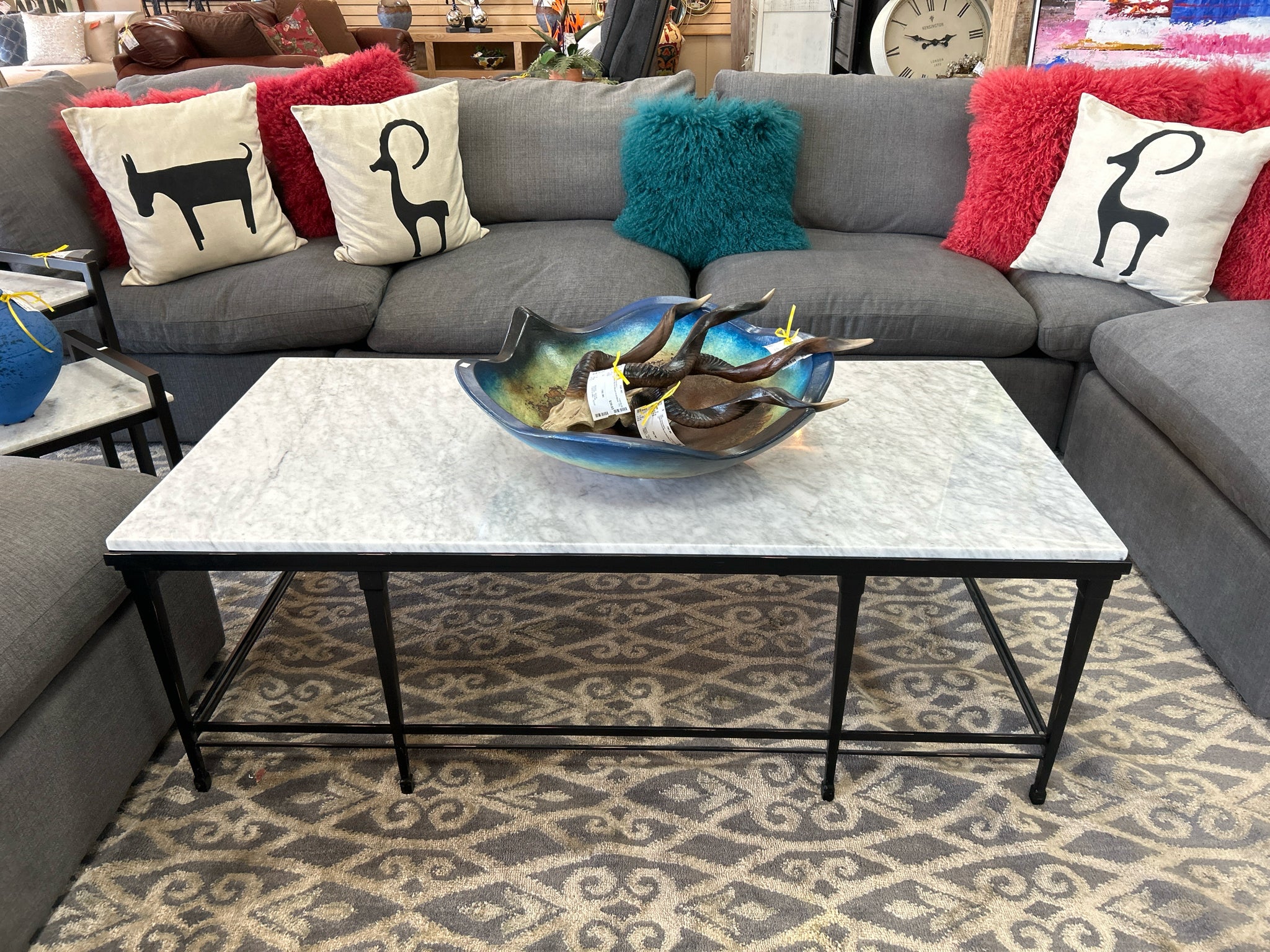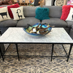 White Marble Rectangle Top Coffee Table with Black Metal Base. 55x27x20"