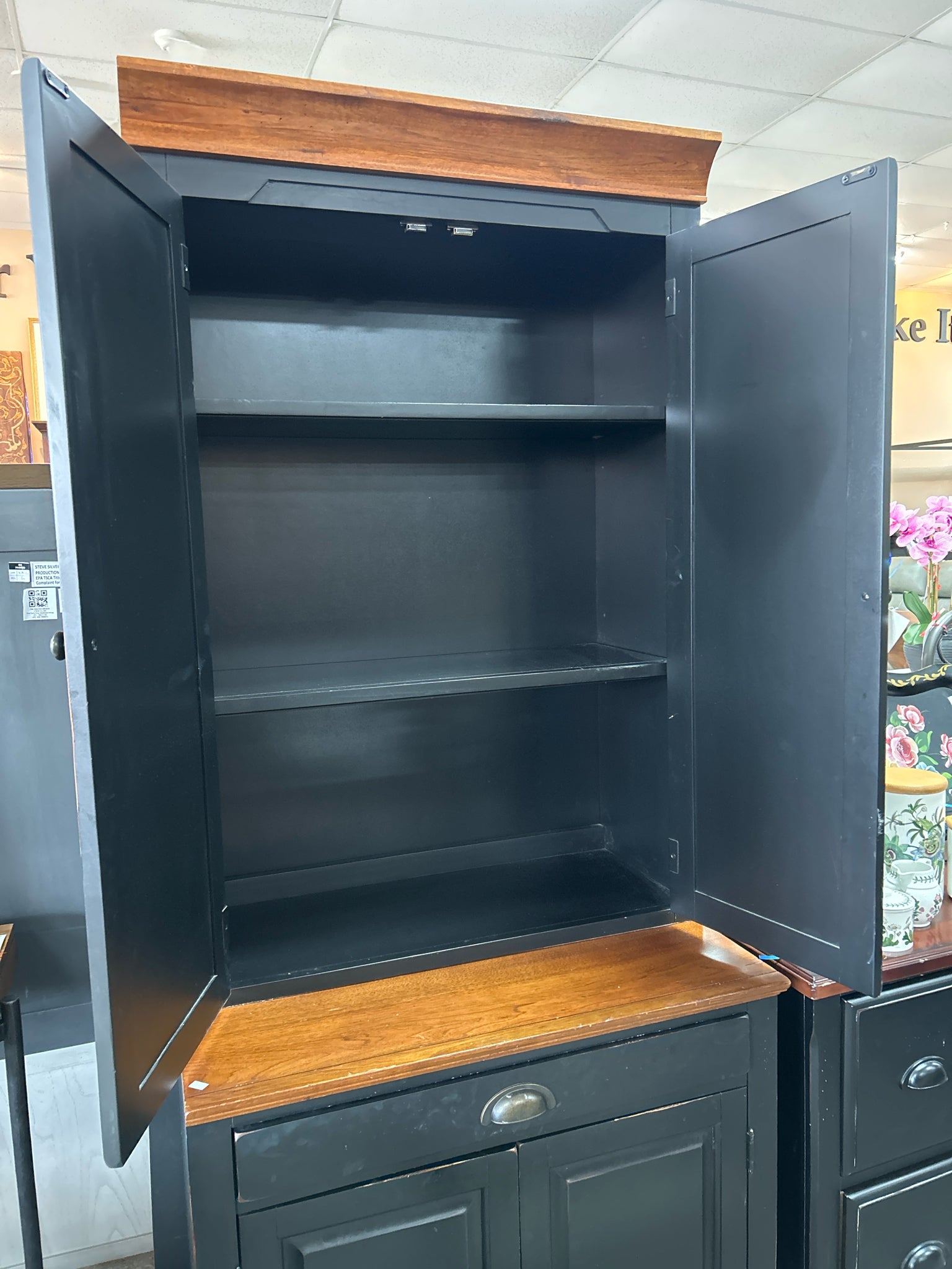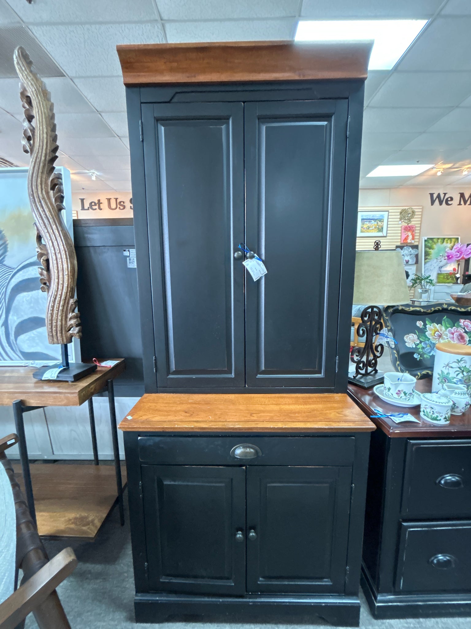 2-Piece Black & Cherrywood Computer Hutch - 32x22x78"h