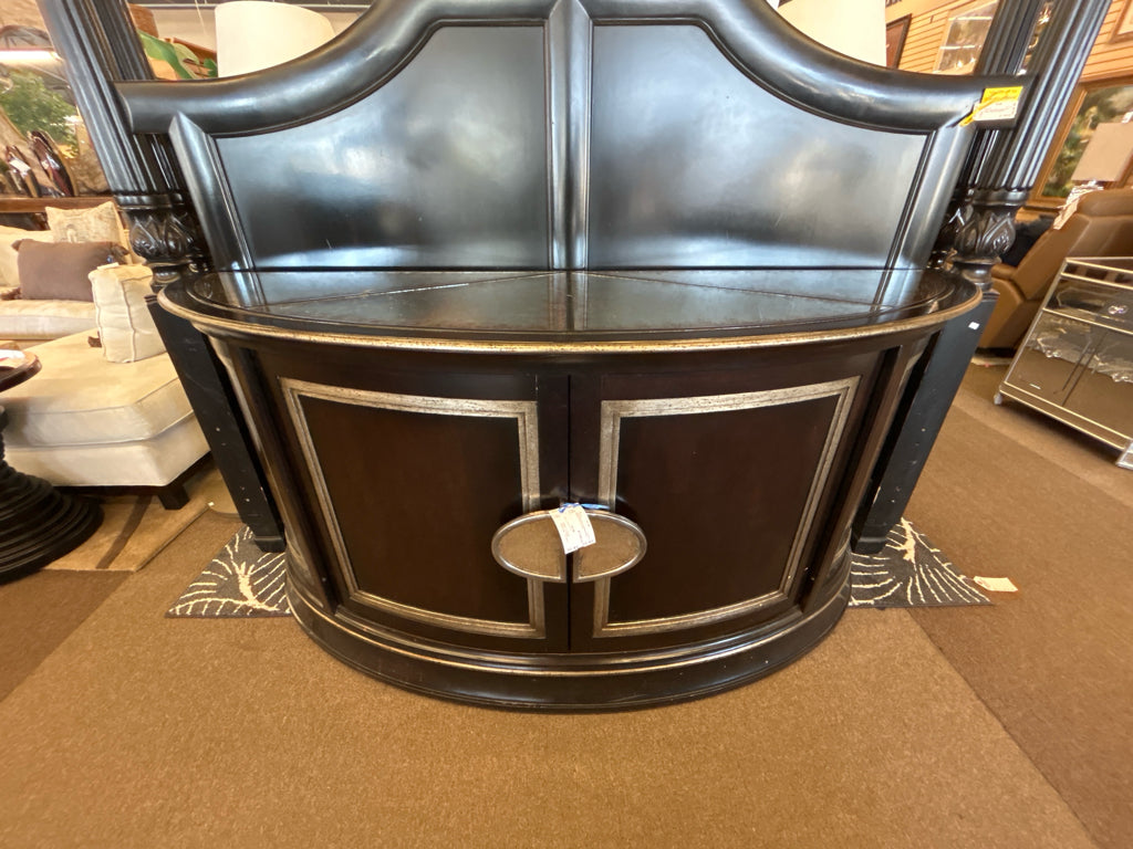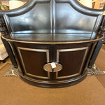 (AS IS) Dark Wood & Antique Mirror 4-Door Curved Console