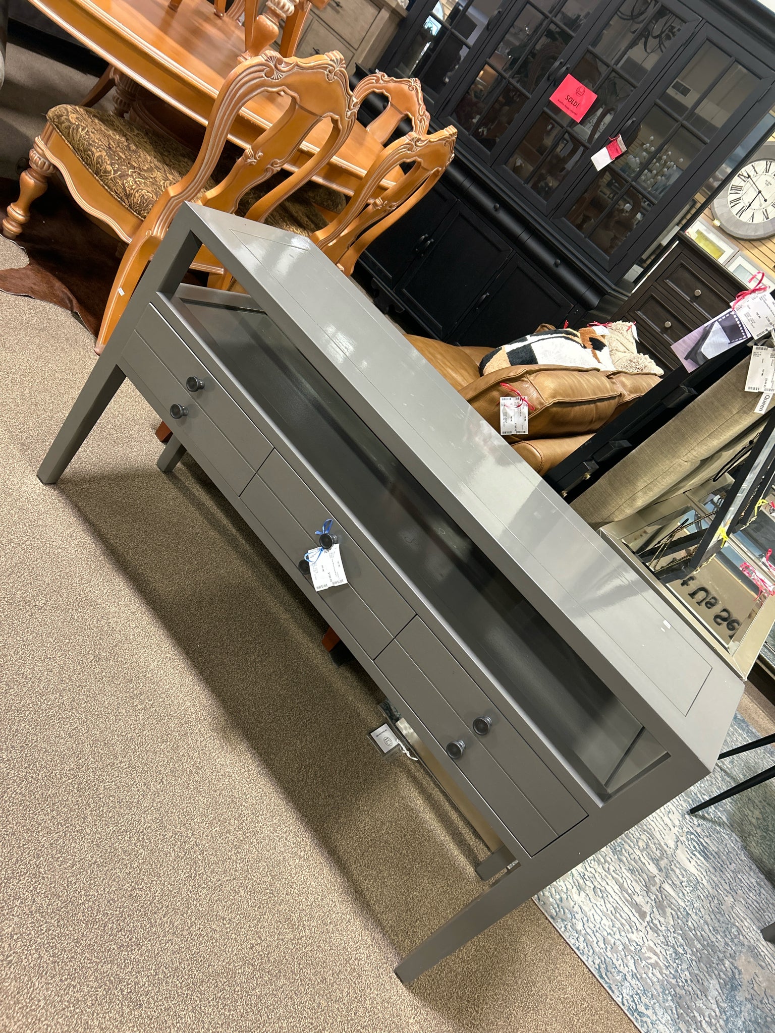 AS IS 54" Gray Wood Console w/ 3 Drawers