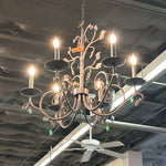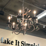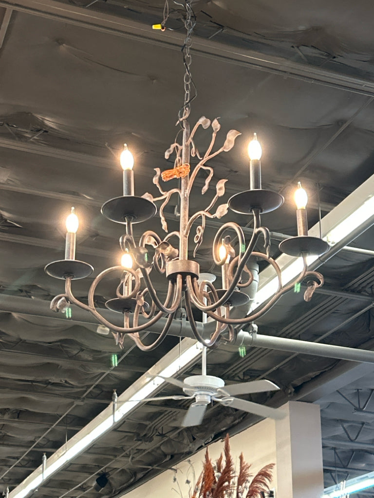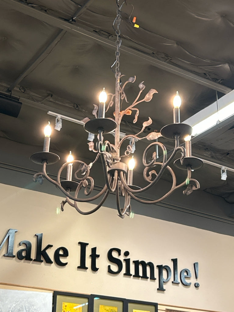 Brown Metal Scroll & Leaf Design 6-Light Chandelier