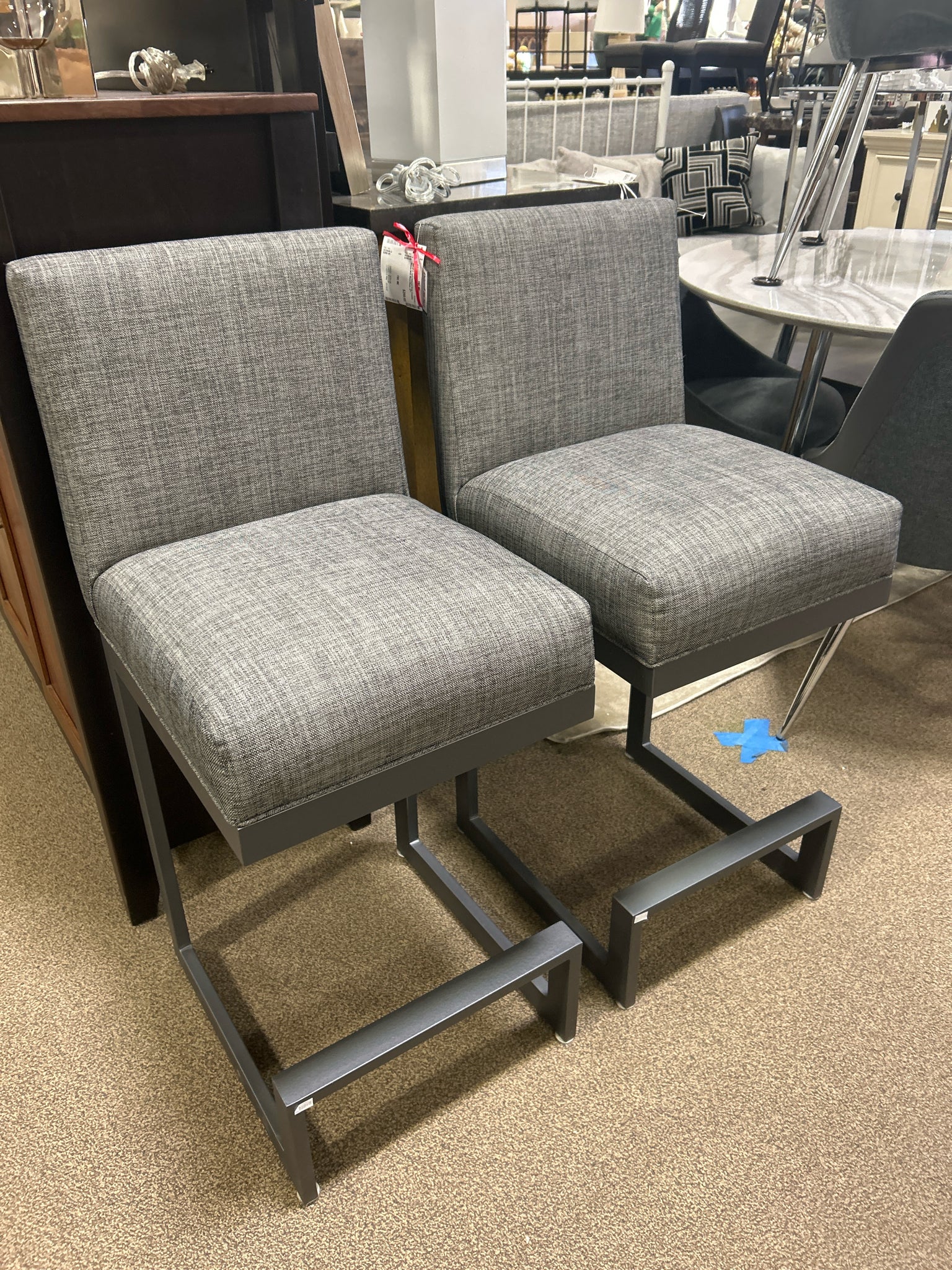 Set of 2- Upholstered Gray Counter Stools With Metal Base 27"