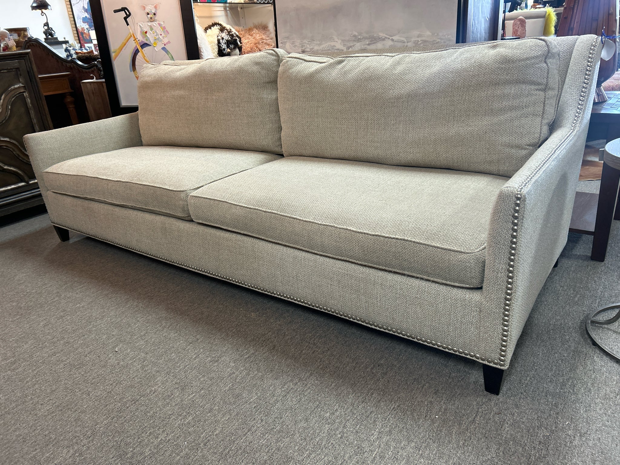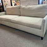Oatmeal Textured Fabric Sofa w/ Silver Nailhead Trim (Made in USA) - 8ft.long, 39"deep
