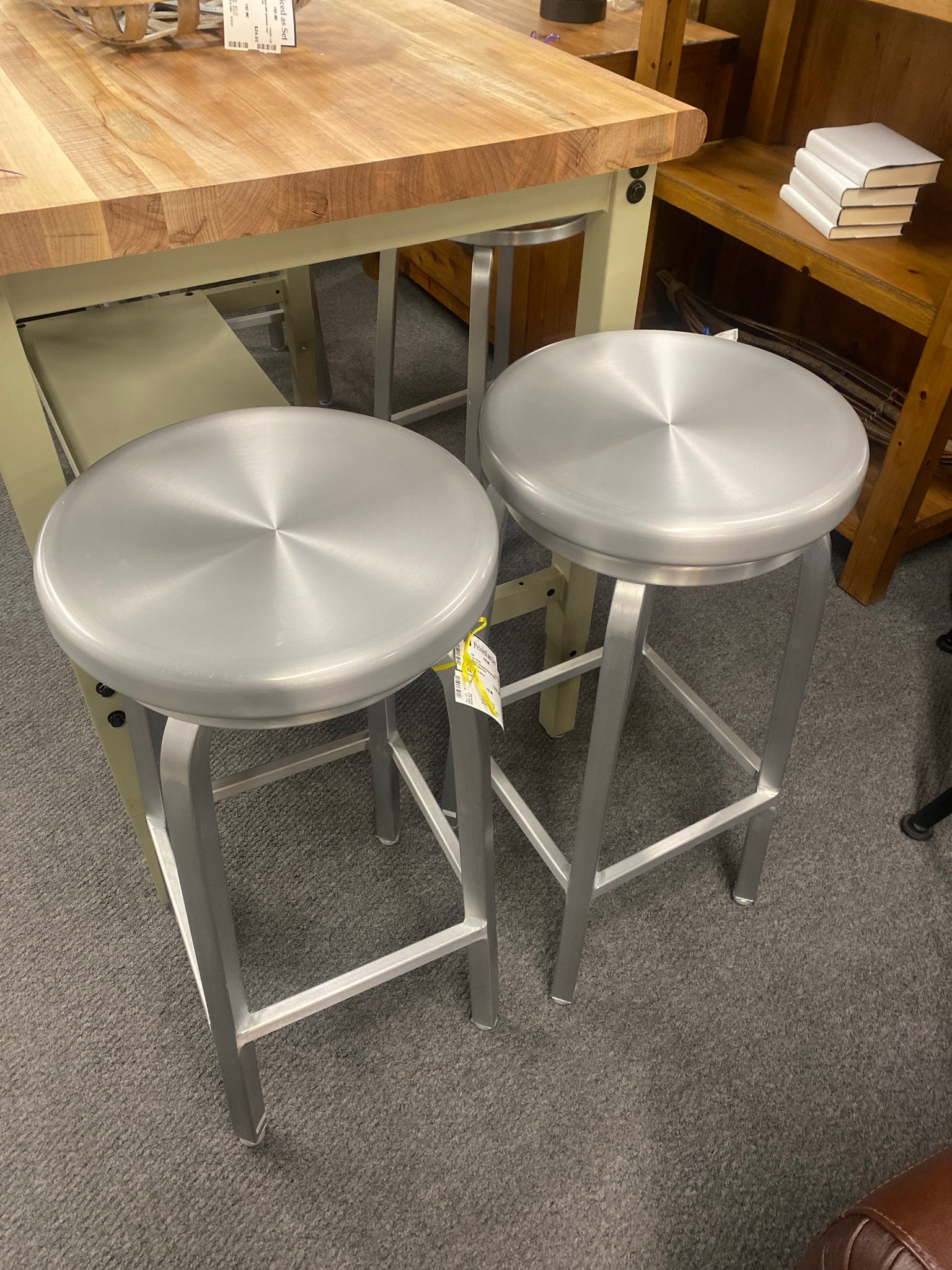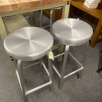 Set of 2 Brushed Aluminum Metal Swivel Barstools