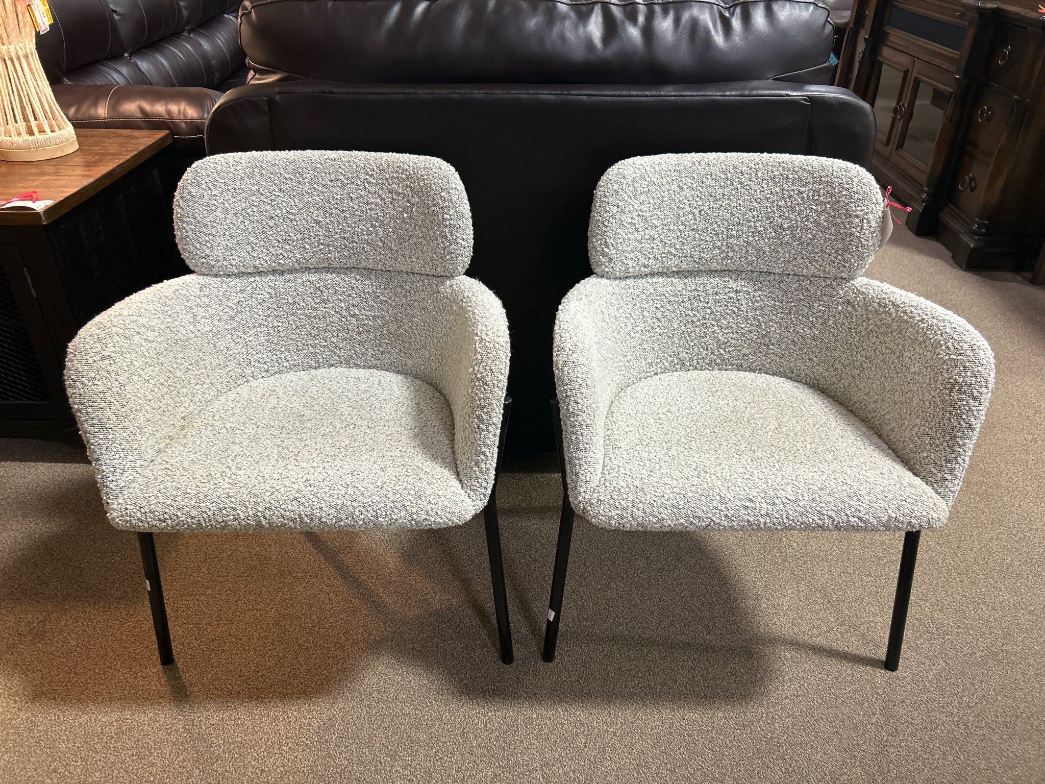 Set of 2 Black and White Boucle Chairs