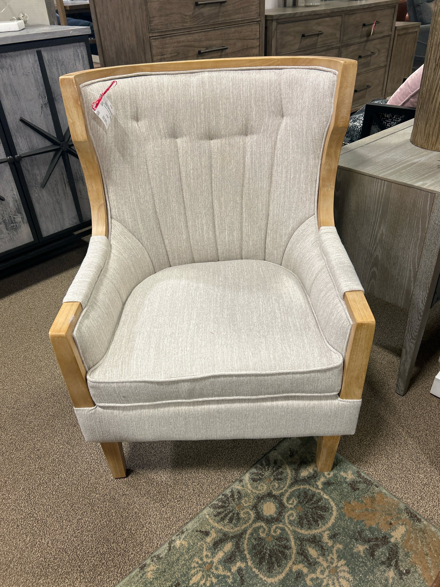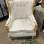 CVFZR5137-BEIGE UPHOLSTERED ACCENT ARM CHAIR W/WOOD TRIM