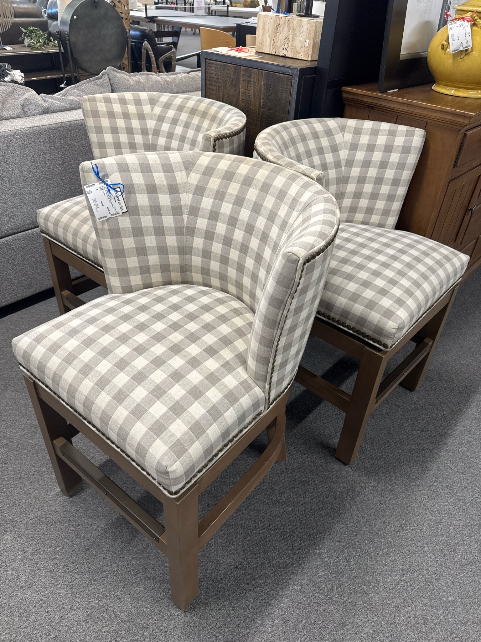 Set of 3 Grey and Cream Swivel Counter Chairs AS IS
