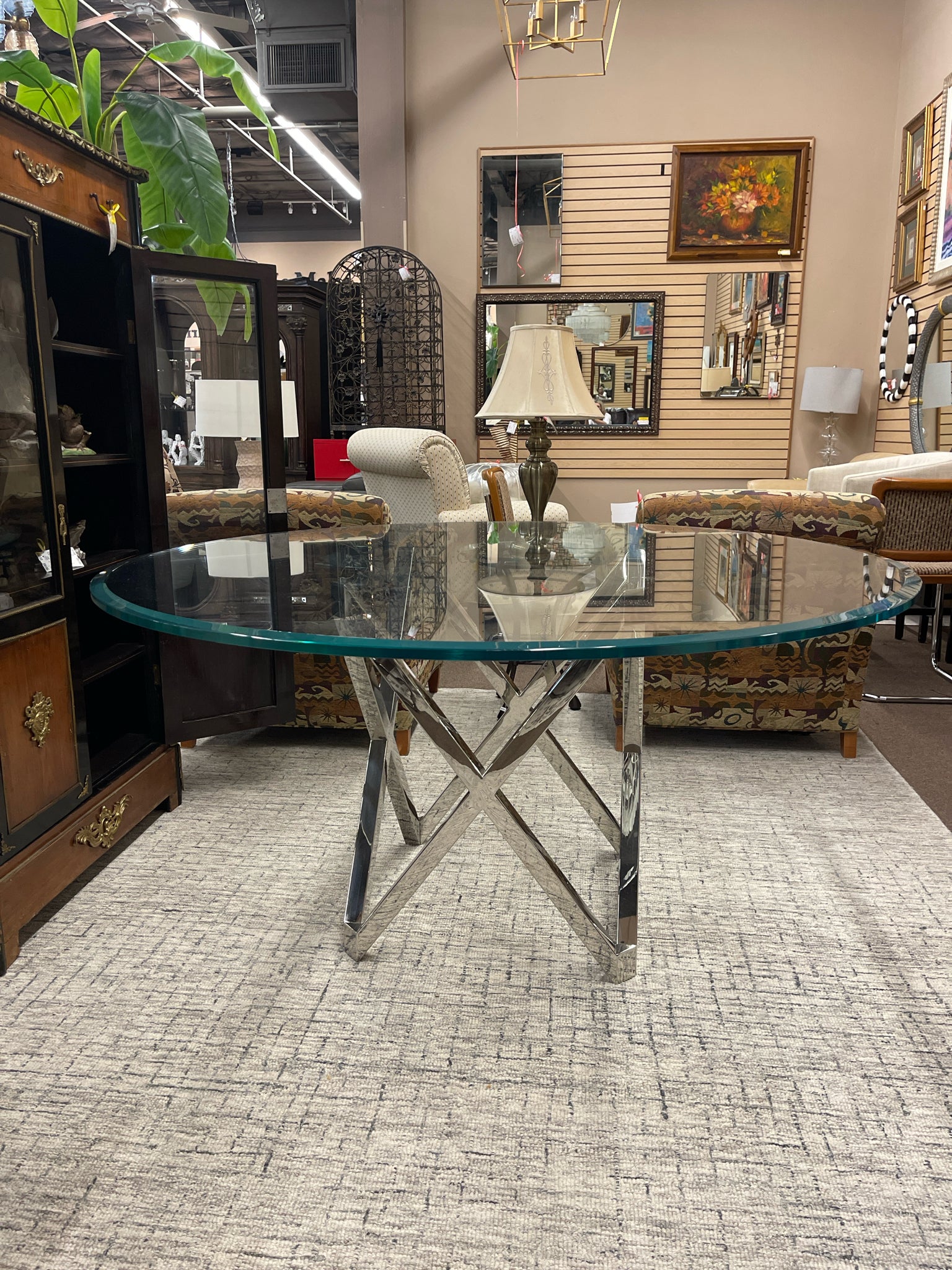 1.2" w/ Beveled Edge Glass Table Top on Chrome Base 60"Round