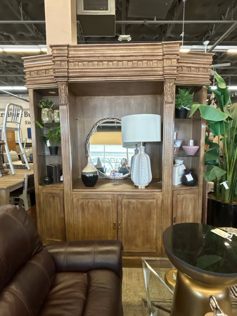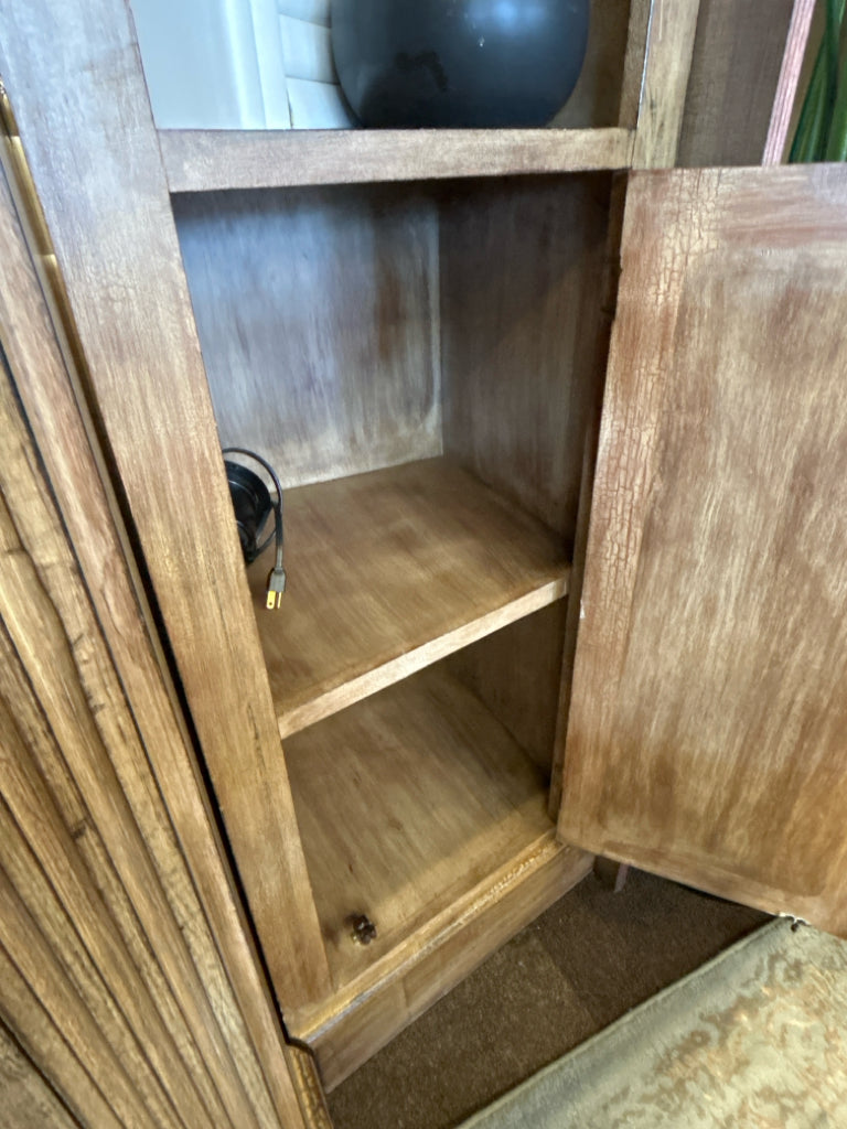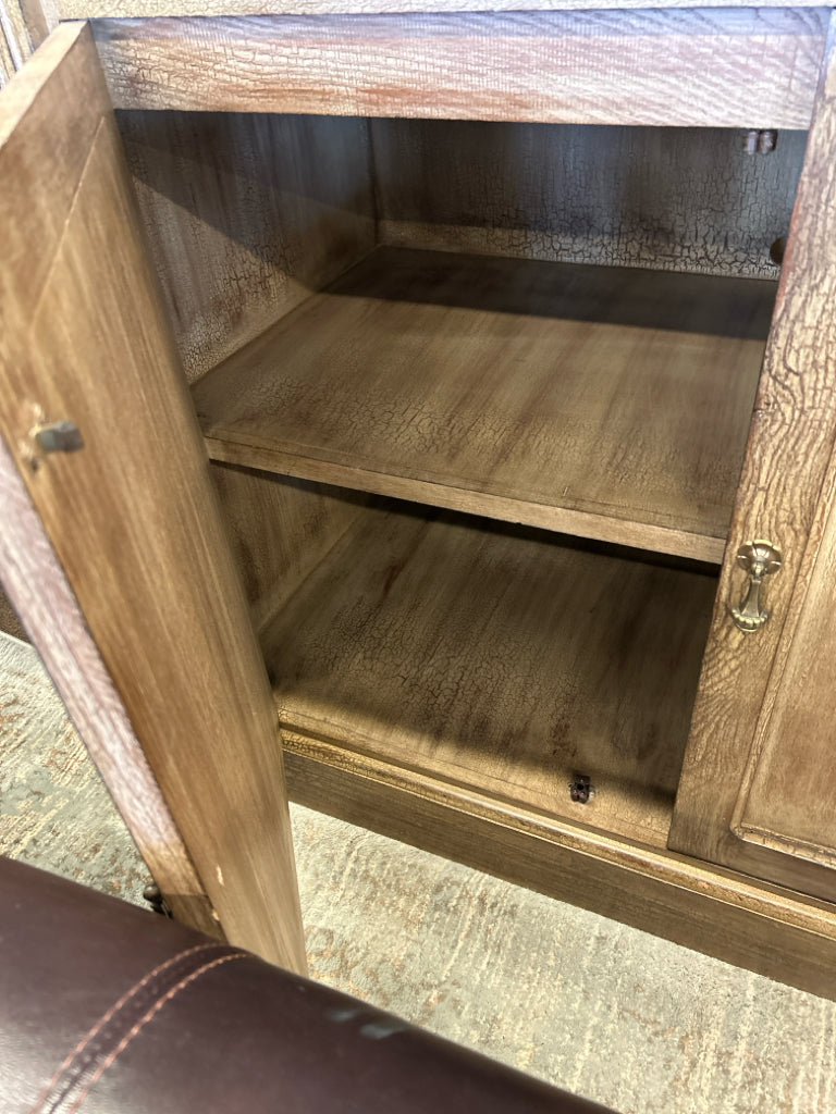 (AS IS - Missing a pull) 4PC Light Brown Crackle Finish Storage Display Cabinet