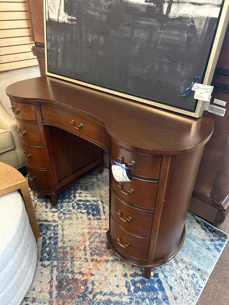 Medium Finish Wood Kidney-Shaped 7-Drawer Desk