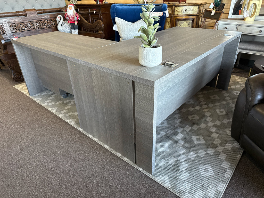 L shaped grey office desk