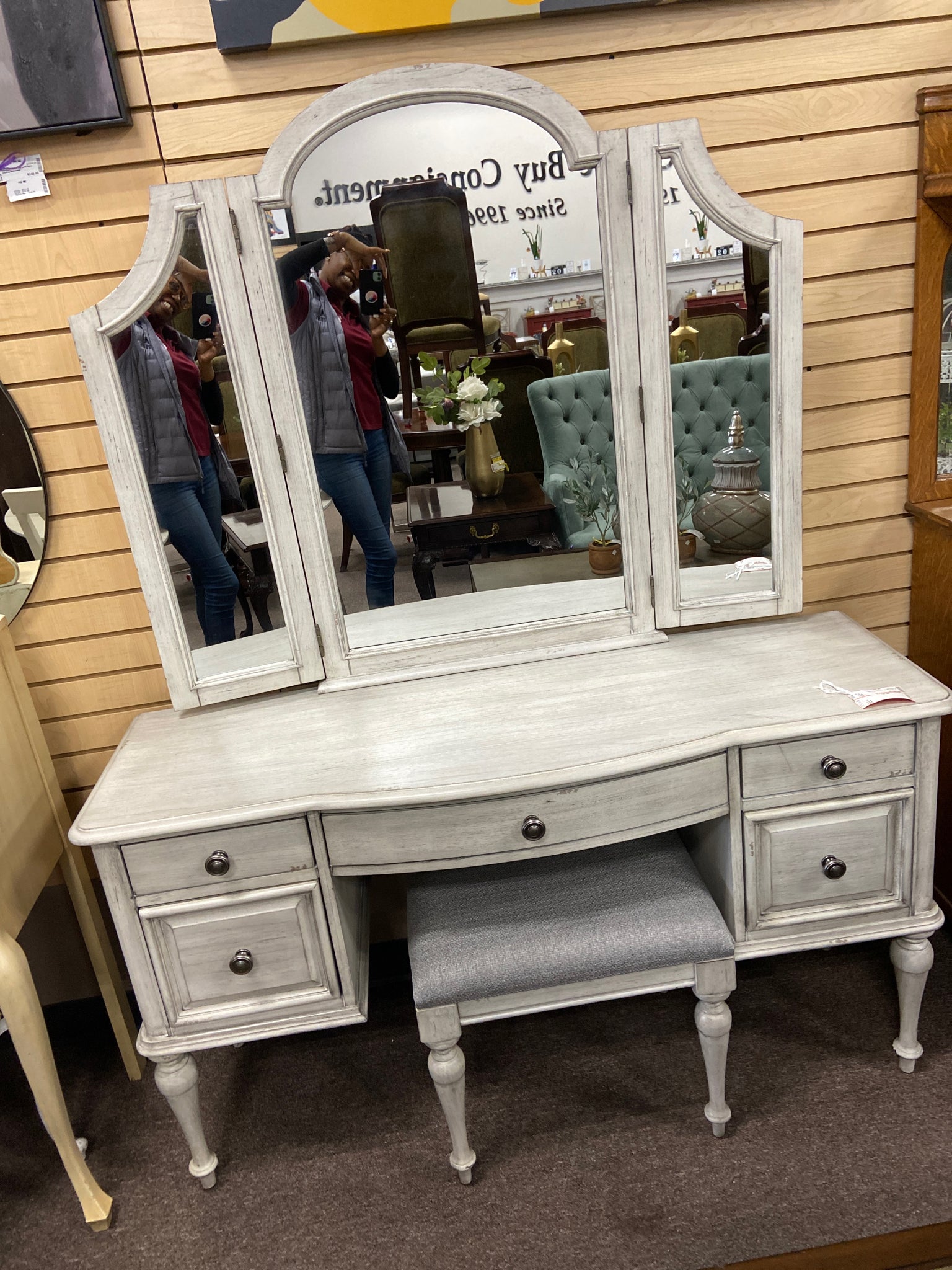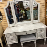 HP900VDW Rustic Ivory vanity desk w mirror & stool