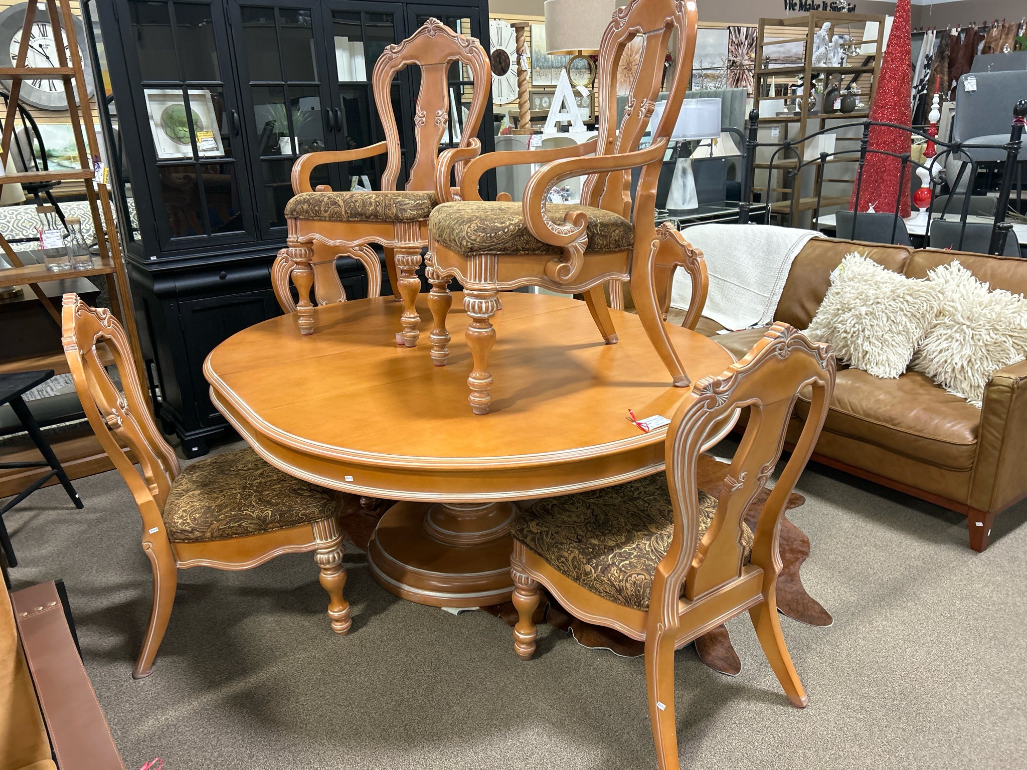 TRADITIONAL LIGHT WOOD OVAL DINING TABLE W/1-LEAF & 6-CHAIRS