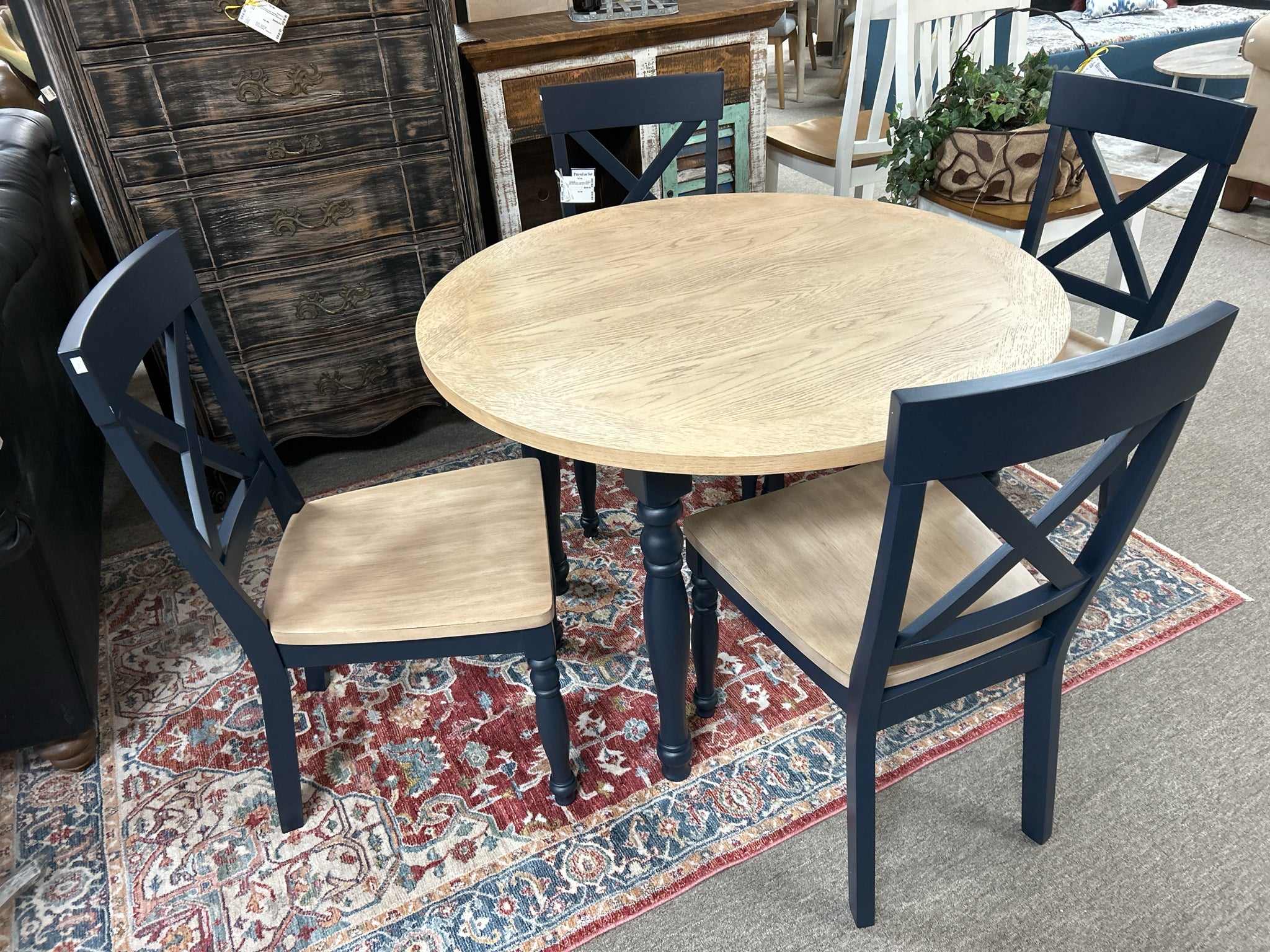 DAR4242B SET- Light Wood Top/Blue Base 42" Dining Table with 4 Chairs.