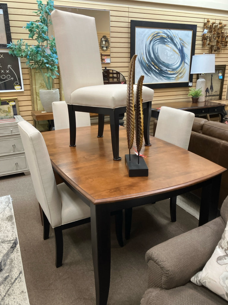 CANADIAN TWO TONE WOOD DINING TABLE W/1-LEAF & FOUR NATURAL PARSON CHAIRS BT CANDER