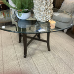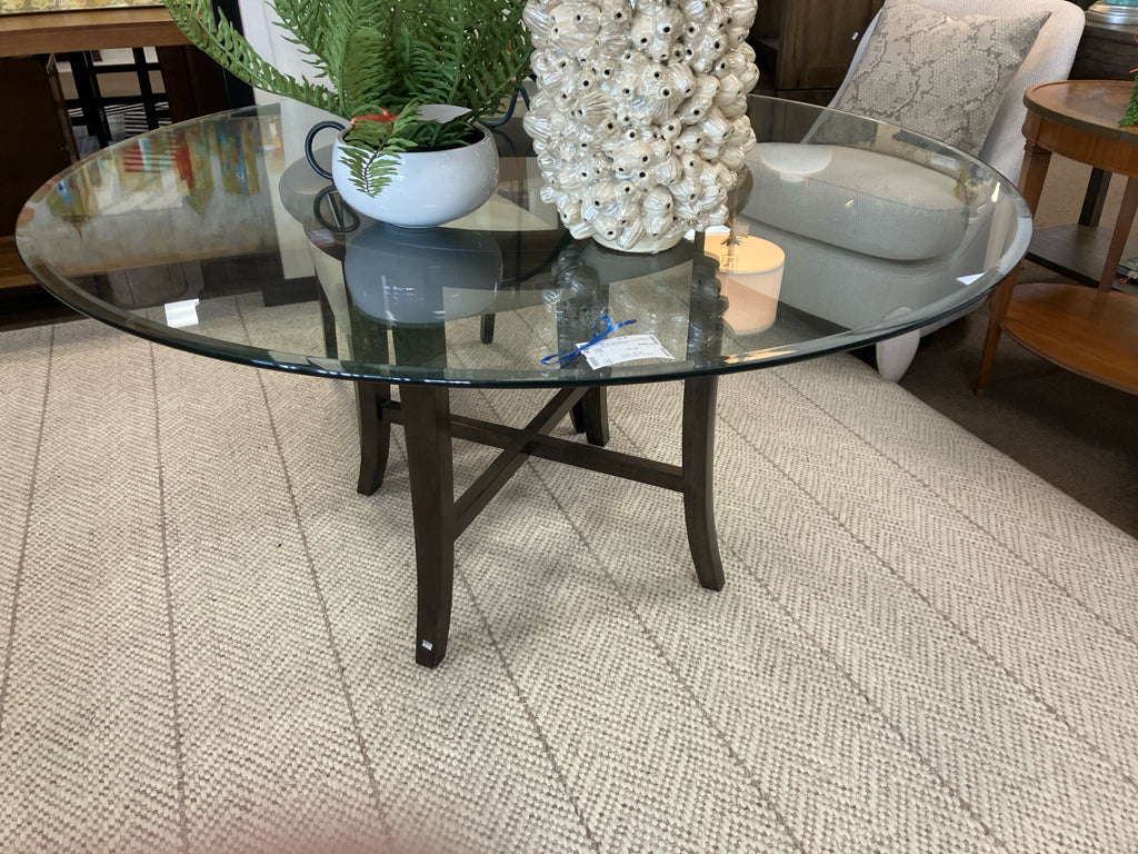 60" Round Glass Top Dining Table with Ebony Pedestal Base