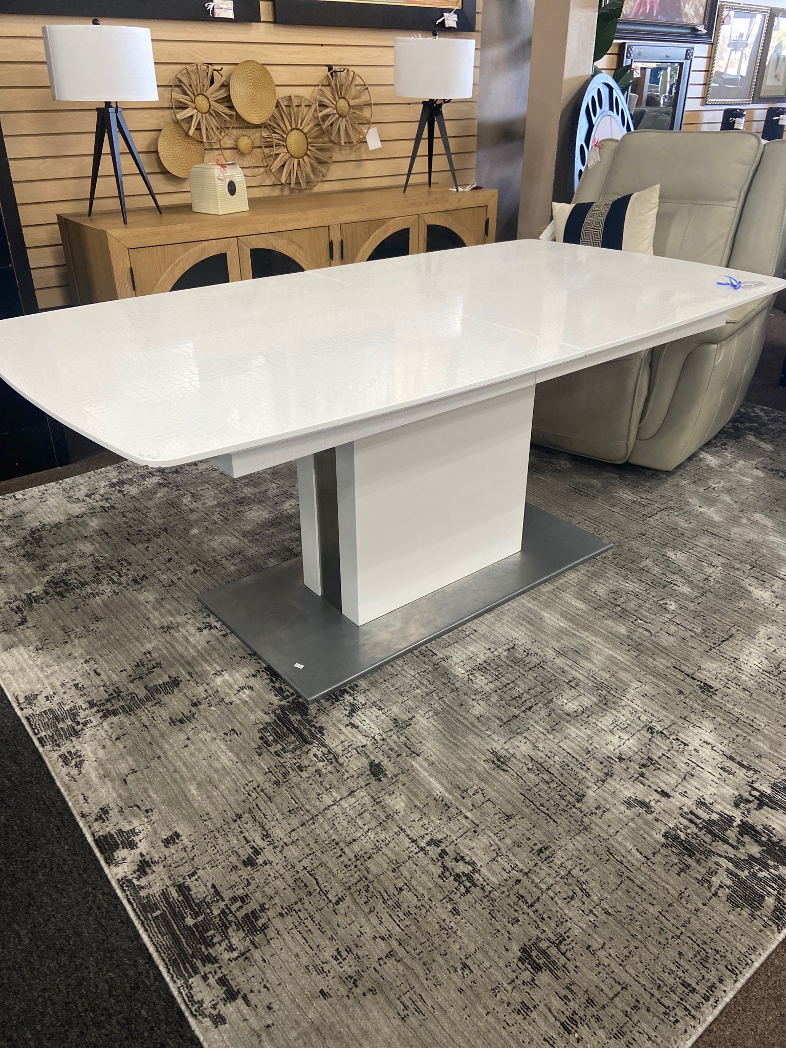 White snake skin look extendable table w 2 leaves (asis wear)