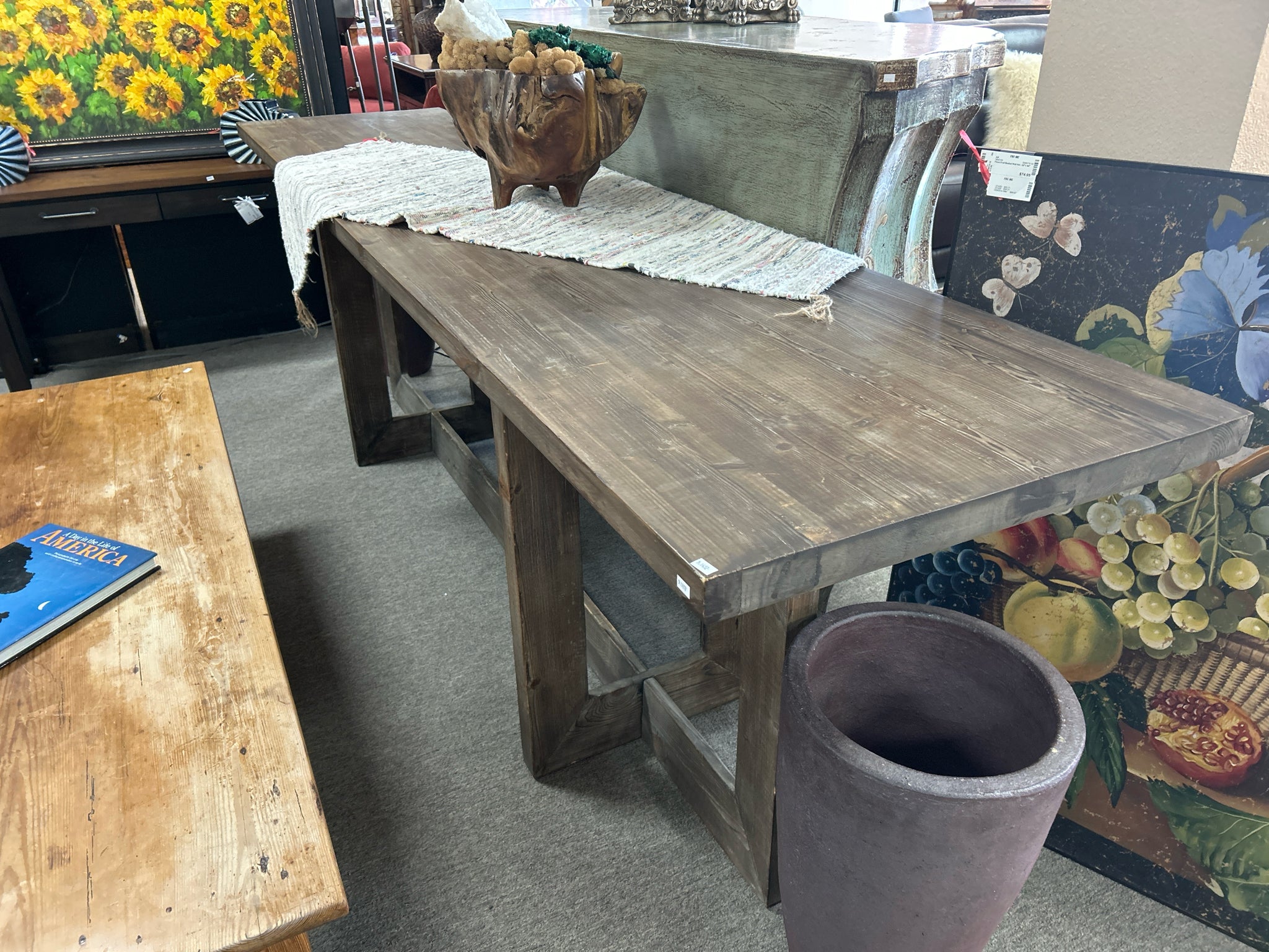 Dark Rustic Wood Dining Table,118"l x 27"d x 37"h