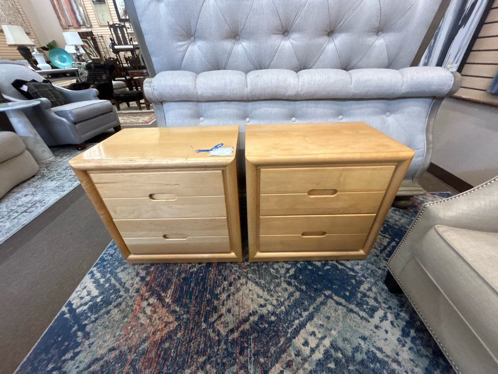(AS IS) SET/2 Vintage MCM Light Wood 2-Drawer Nightstands