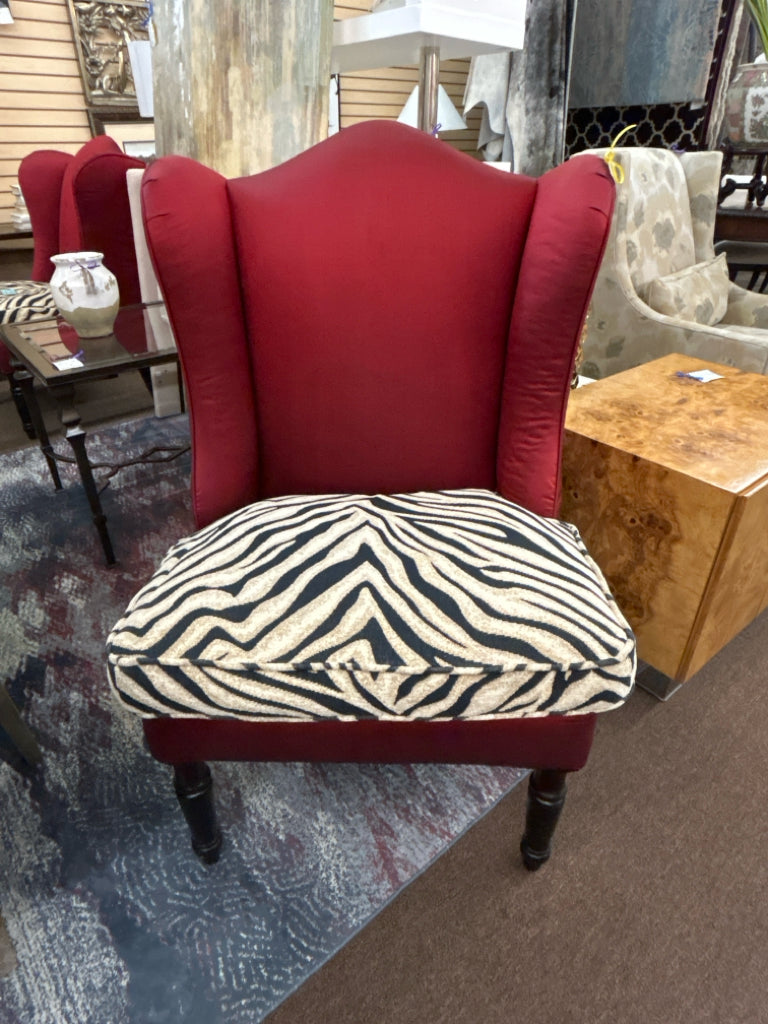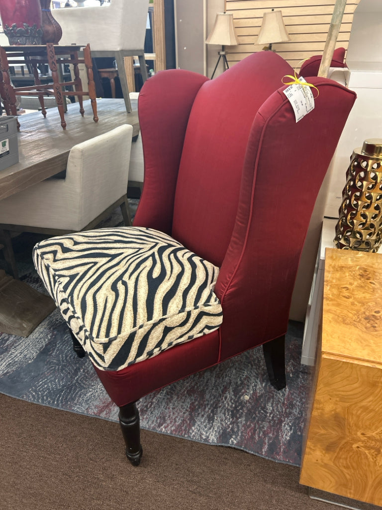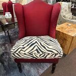 (AS IS - Wear) Red W/ Zebra Cushions Wingback Chair