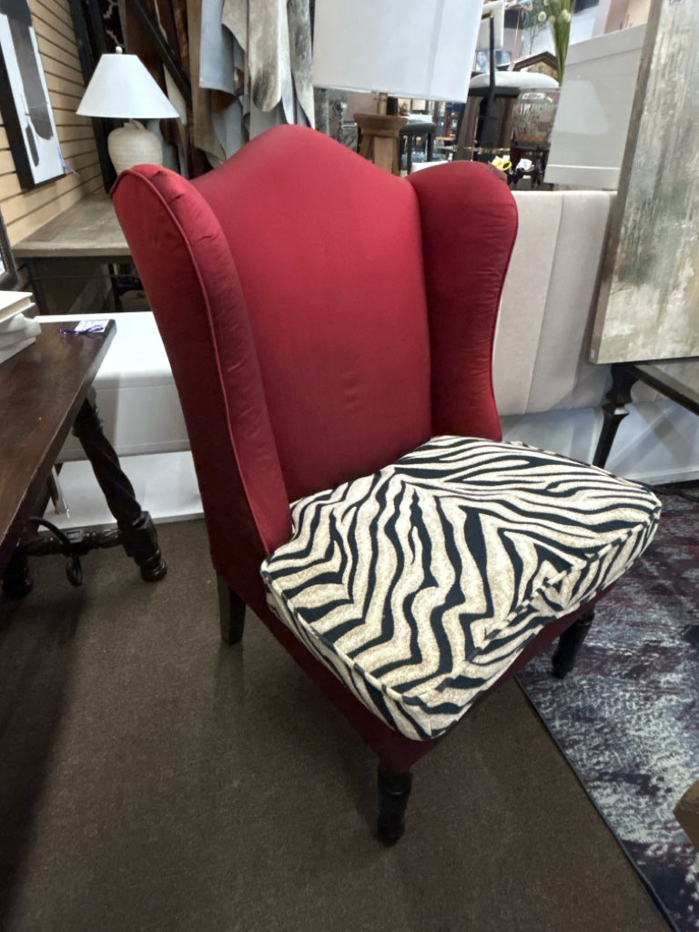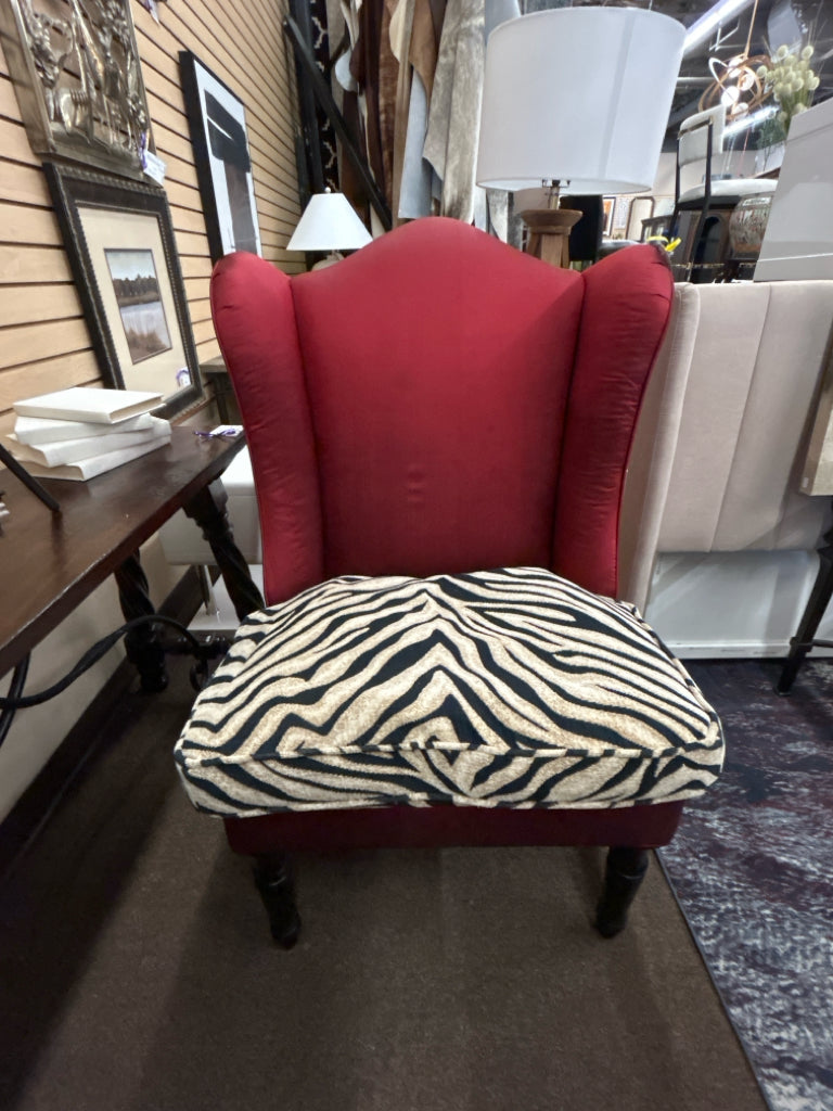 (AS IS - Wear) Red W/ Zebra Cushions Wingback Chair
