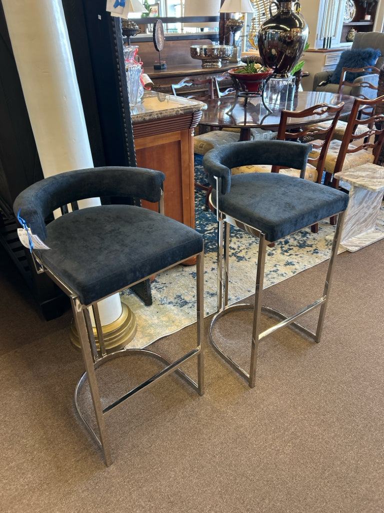 Set of 2 Dante Black Velvet Stainless Steel Bar Stools