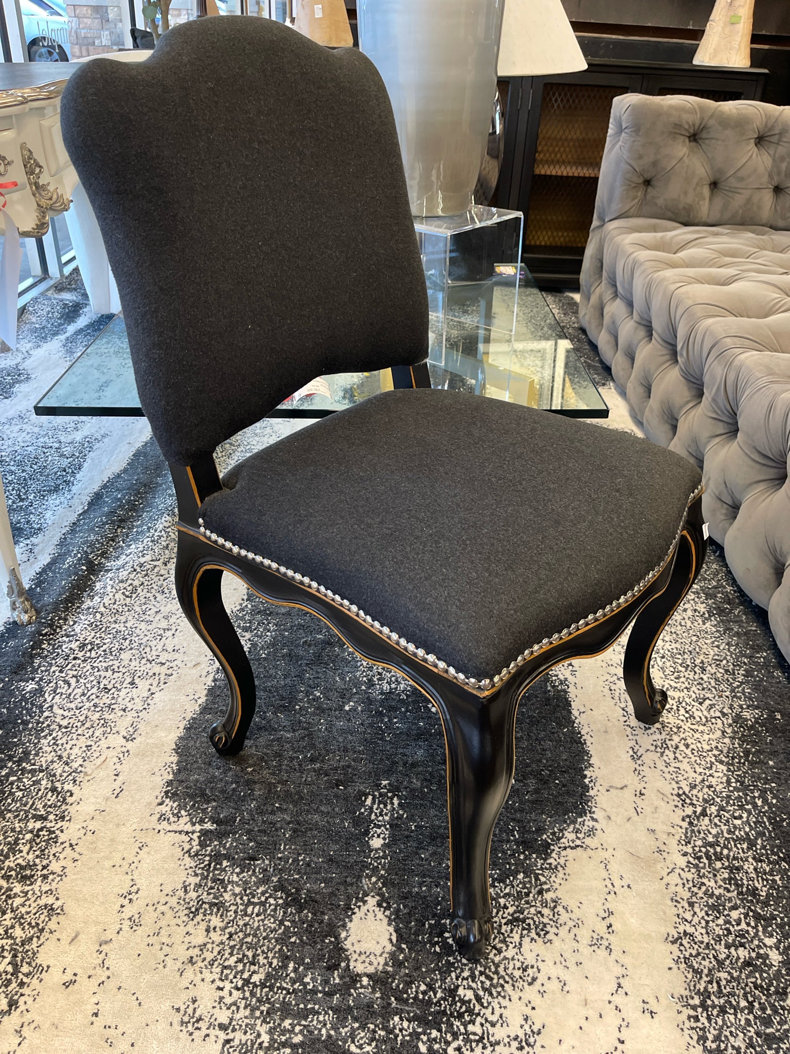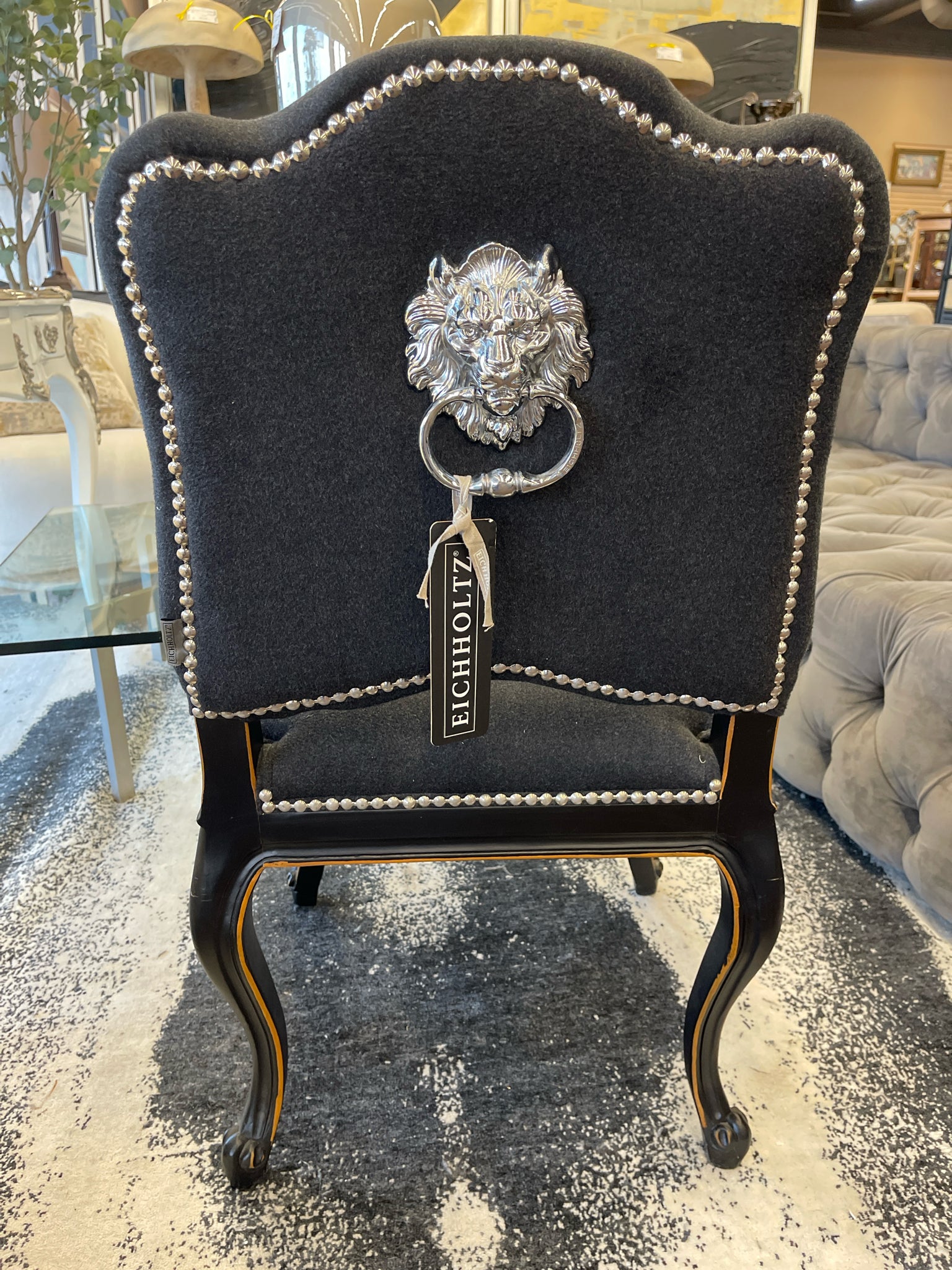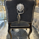 Black Cashmere Upholstry with Nickel Studs & Lion Head on Back