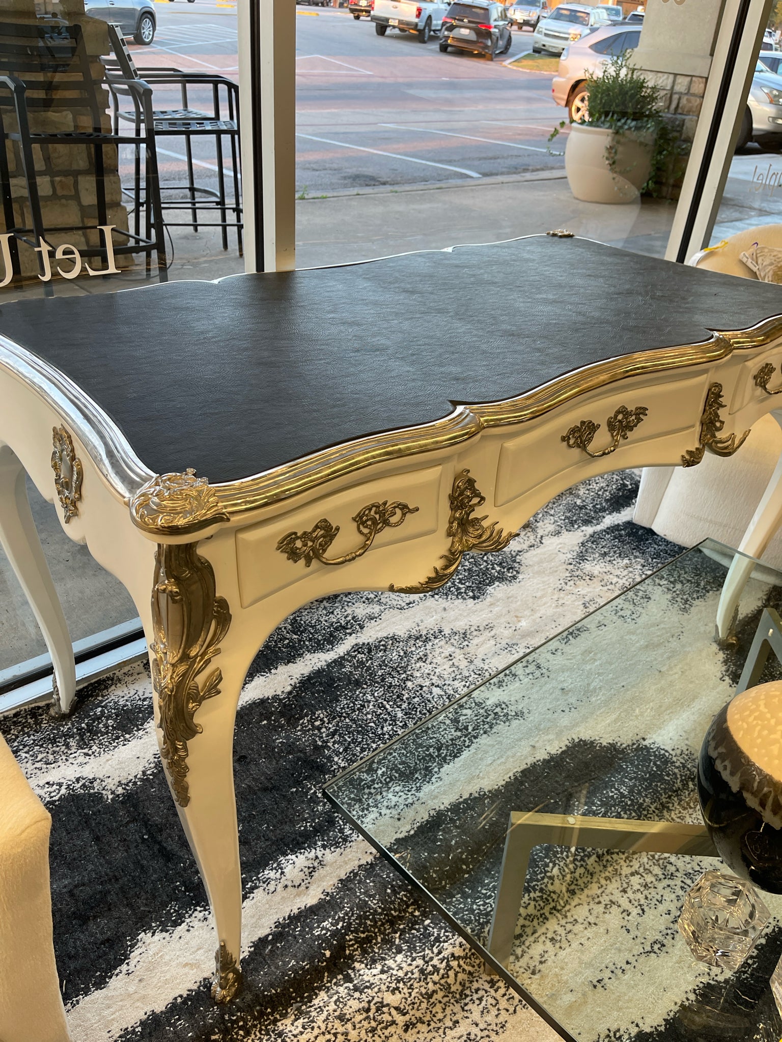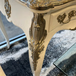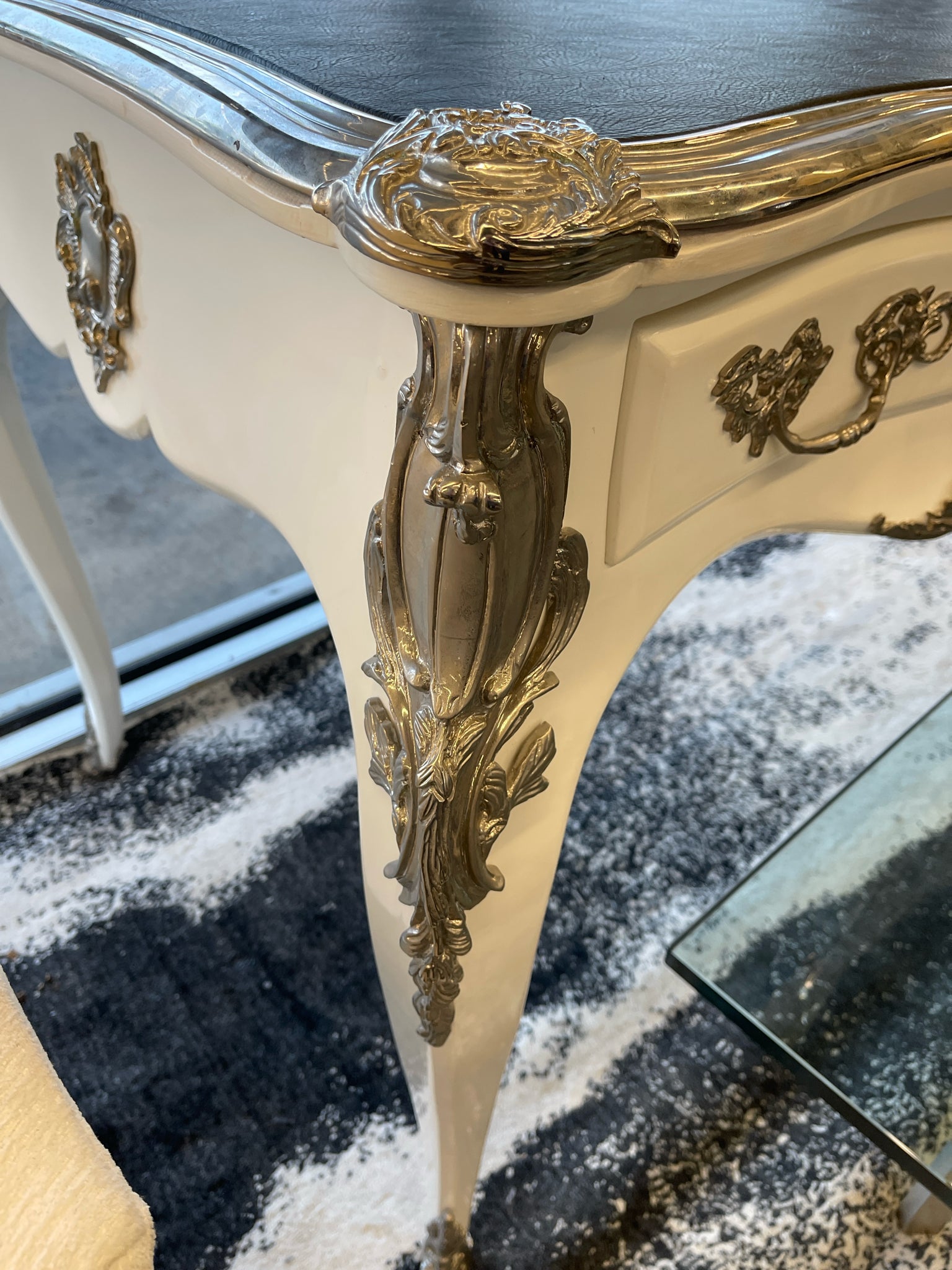 Louis XV Style High Gloss White w/Silver Ormolu & 3 Drawers 55"W 29.5"D