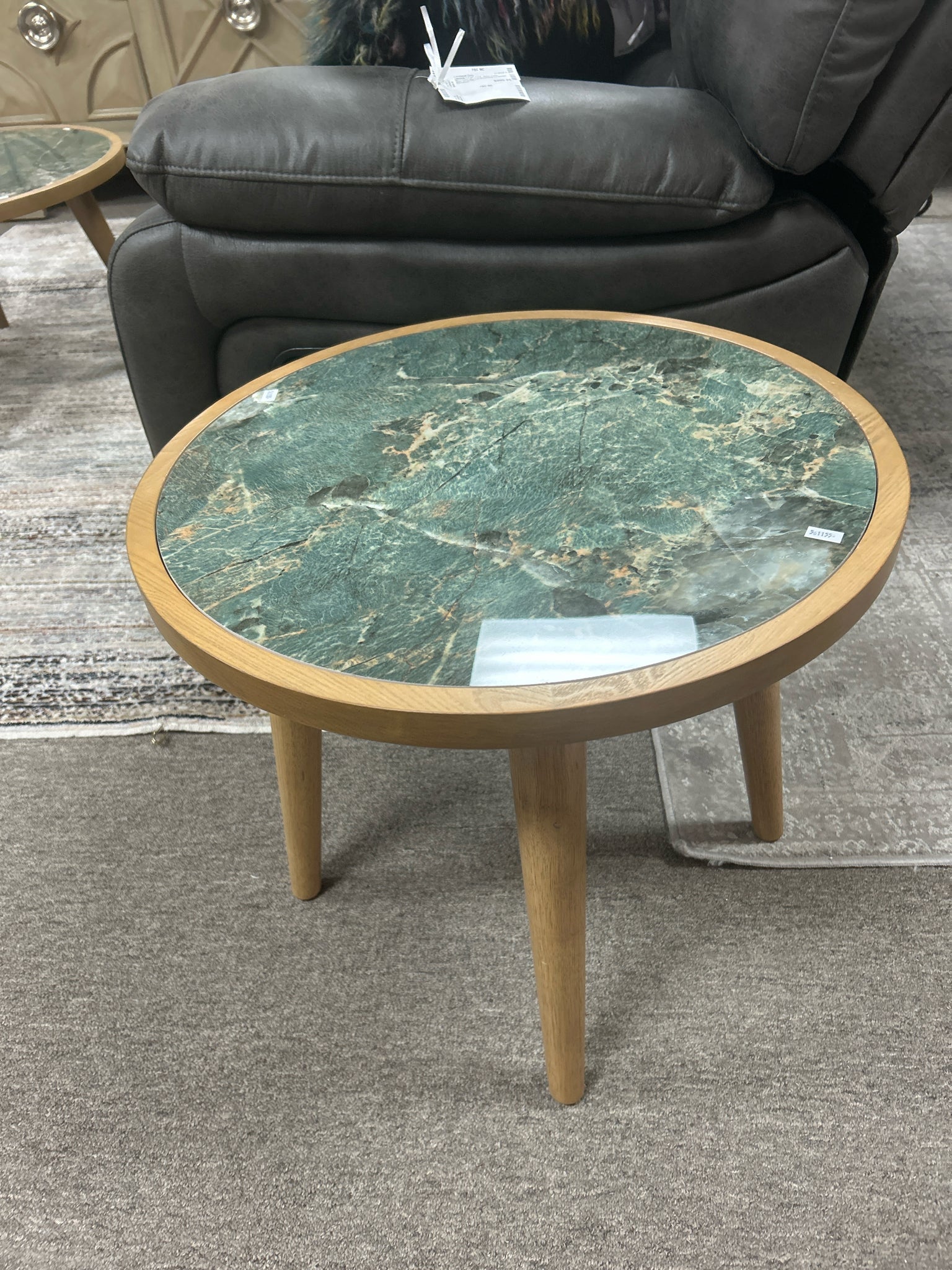 NV200GE 22" Round Stone Inlay Top End Table with Wood Legs