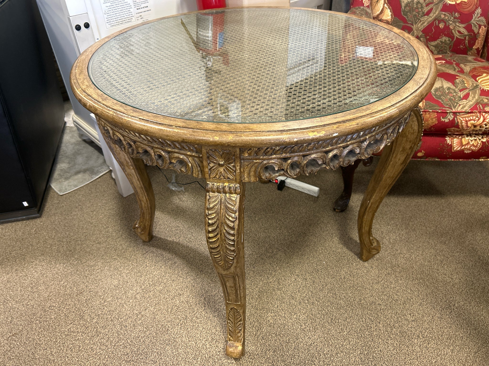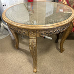 FRENCH LOUIS XV GILTWOOD/CANE ENTRY TABLE W/GLASS TOP 34R 30H