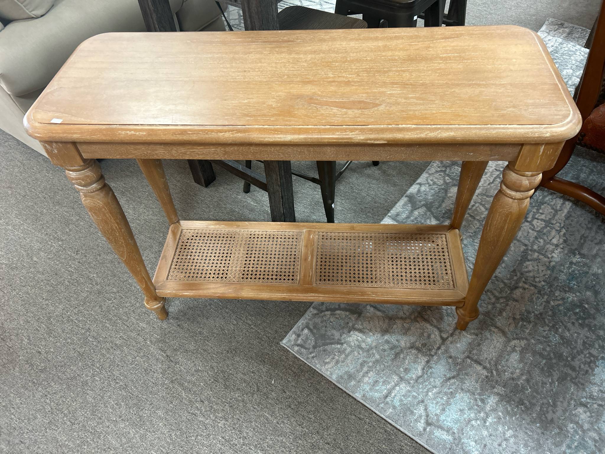 Blonde Wood Entry/Sofa Table w/ Cane Bottom Shelf - 42"x 16"x 31"h