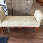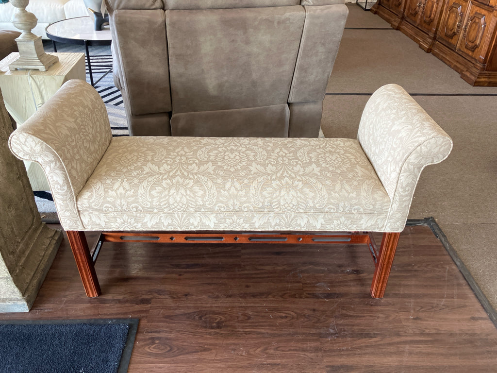 VINTAGE UPHOLSTERED CHIPPENDALE BENCH W/WOOD BASE