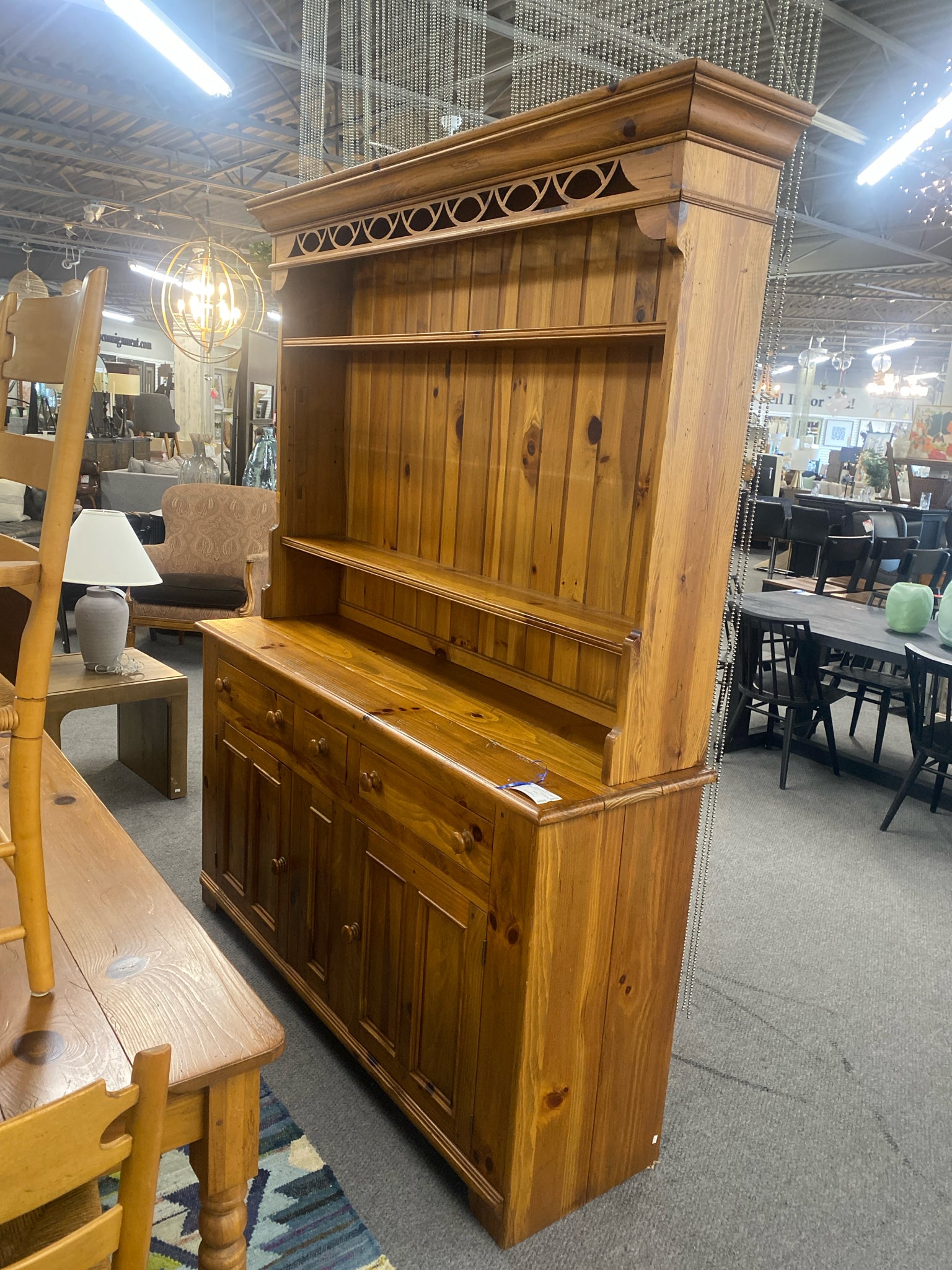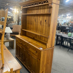 2 Pc Farmhouse Country Pine Cabinet With Hutch