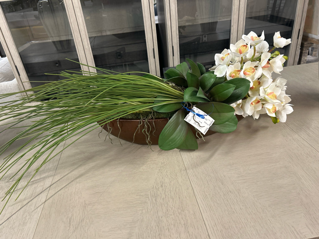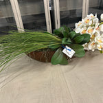 Large White Orchid Floral With Greenery in Oval Metal Planter