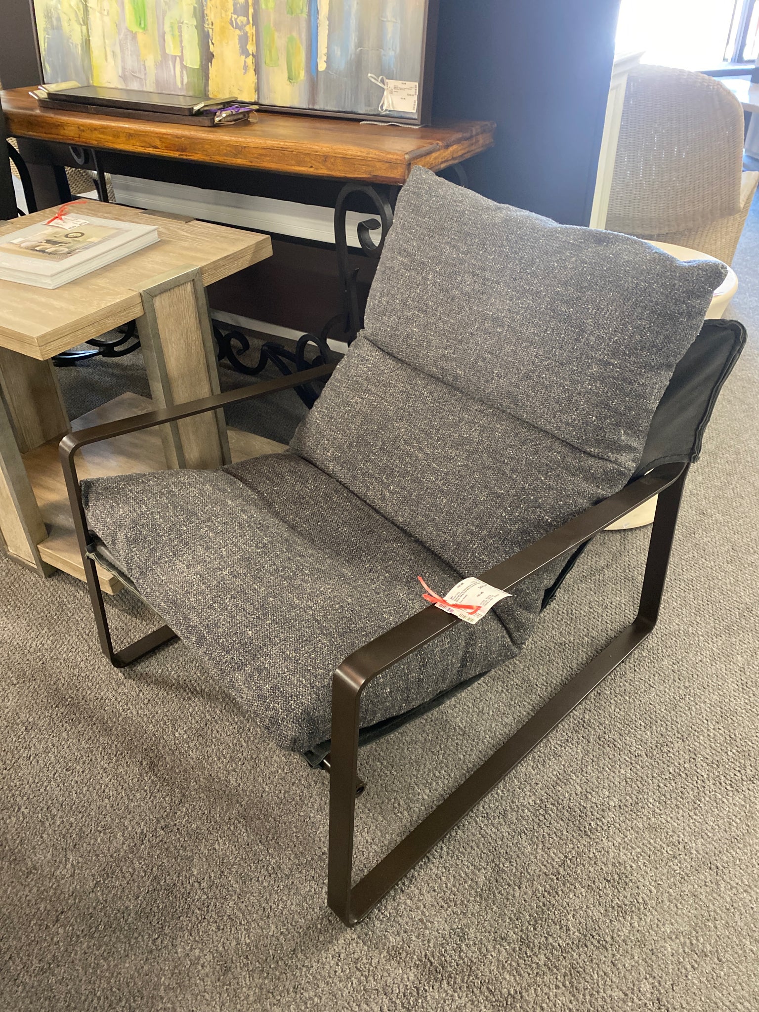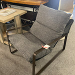 Emmett Grey Upholstered w Leather Back Sling Chair With Gunmetal Finish