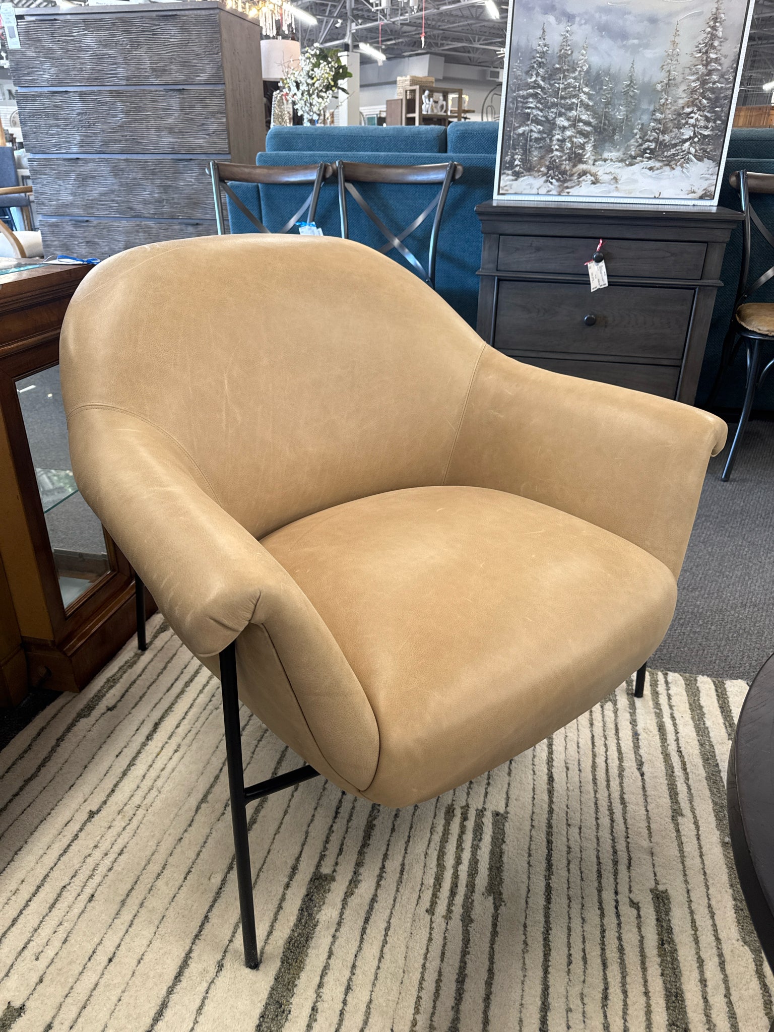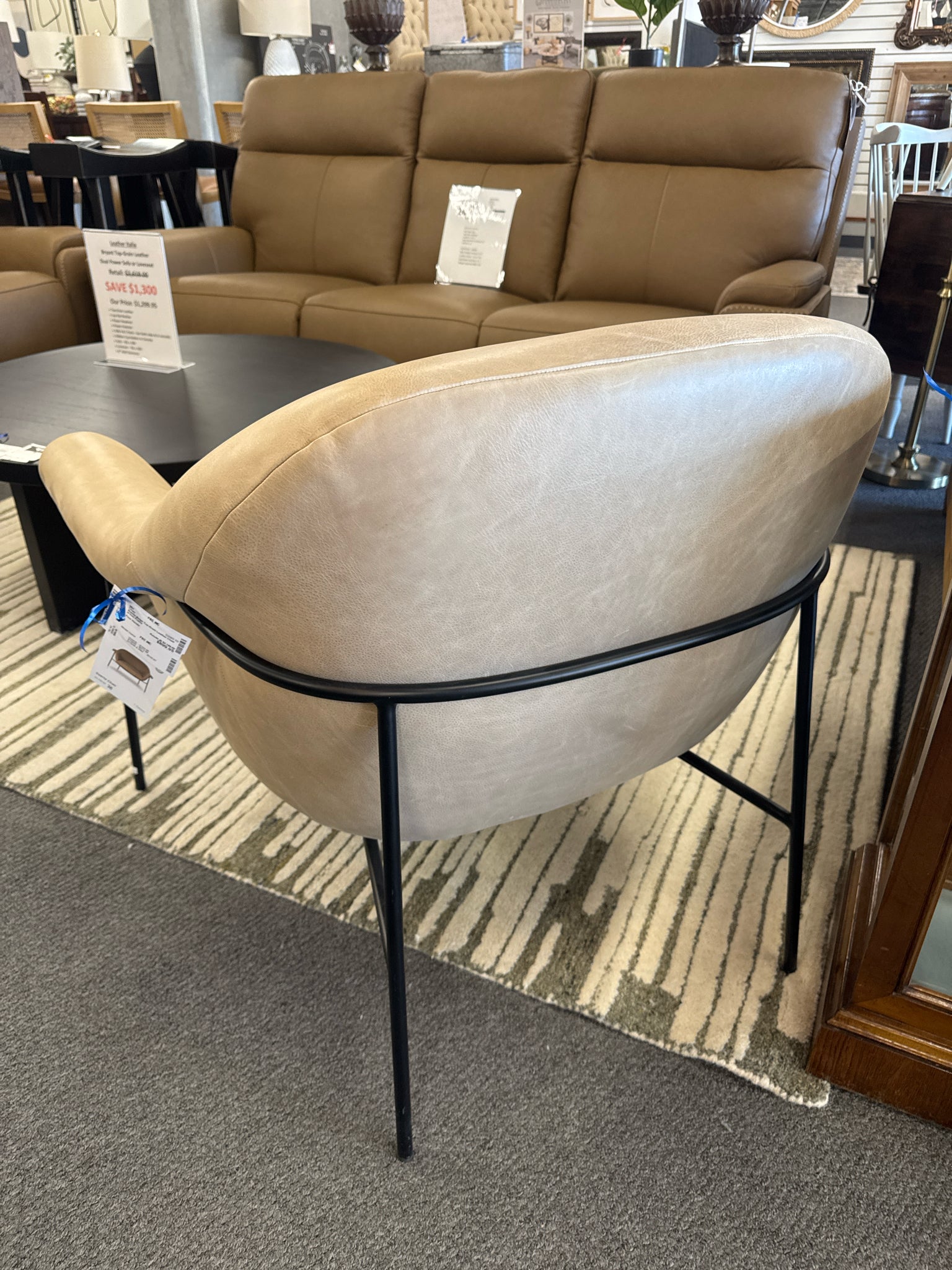 Suerte Beige Top-Grain Leather Chair w Iron Frame