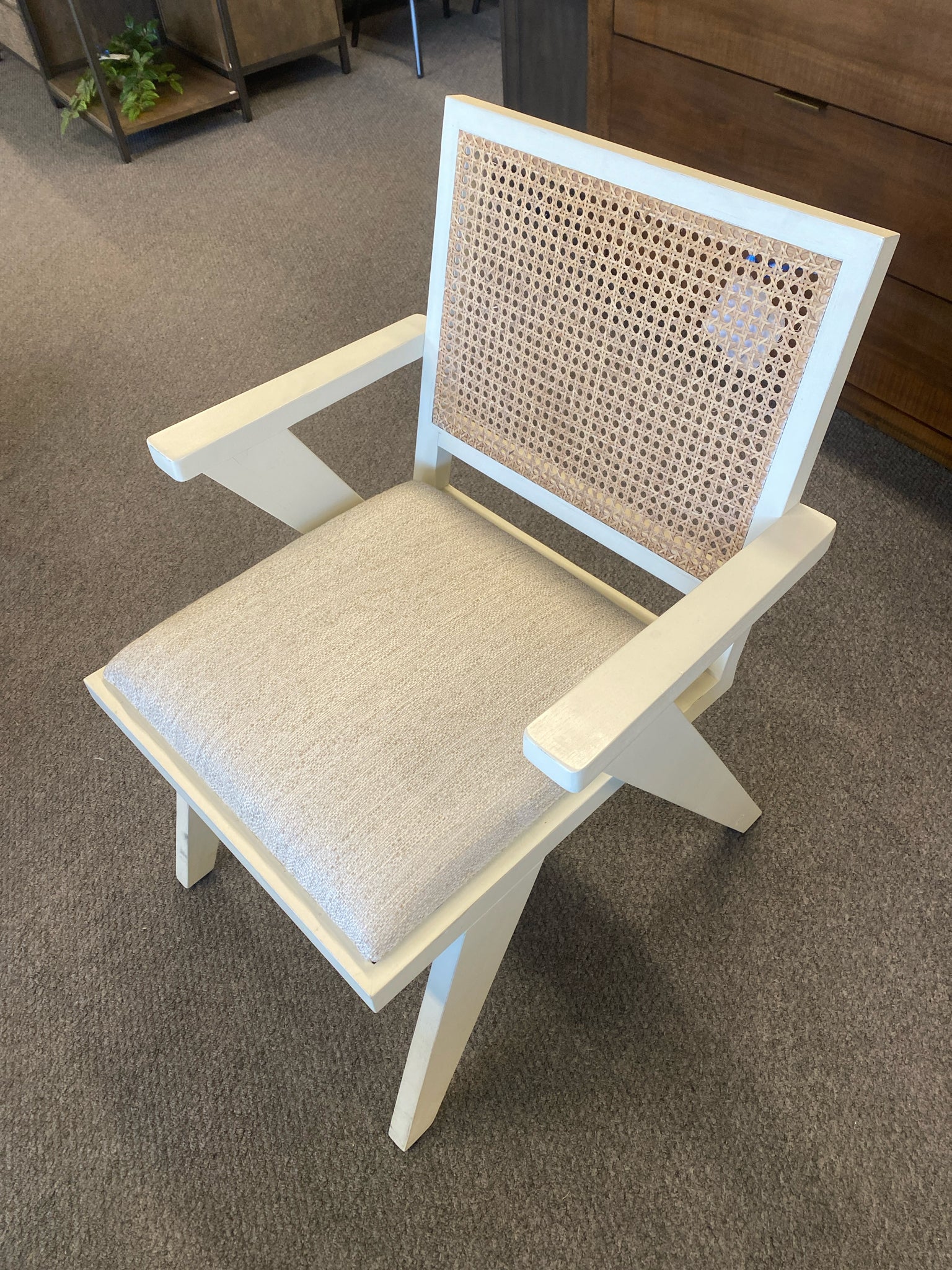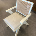 Set of 6 Flora Distressed Cream W Natural Cane and Upholstered Seat Dining Chairs