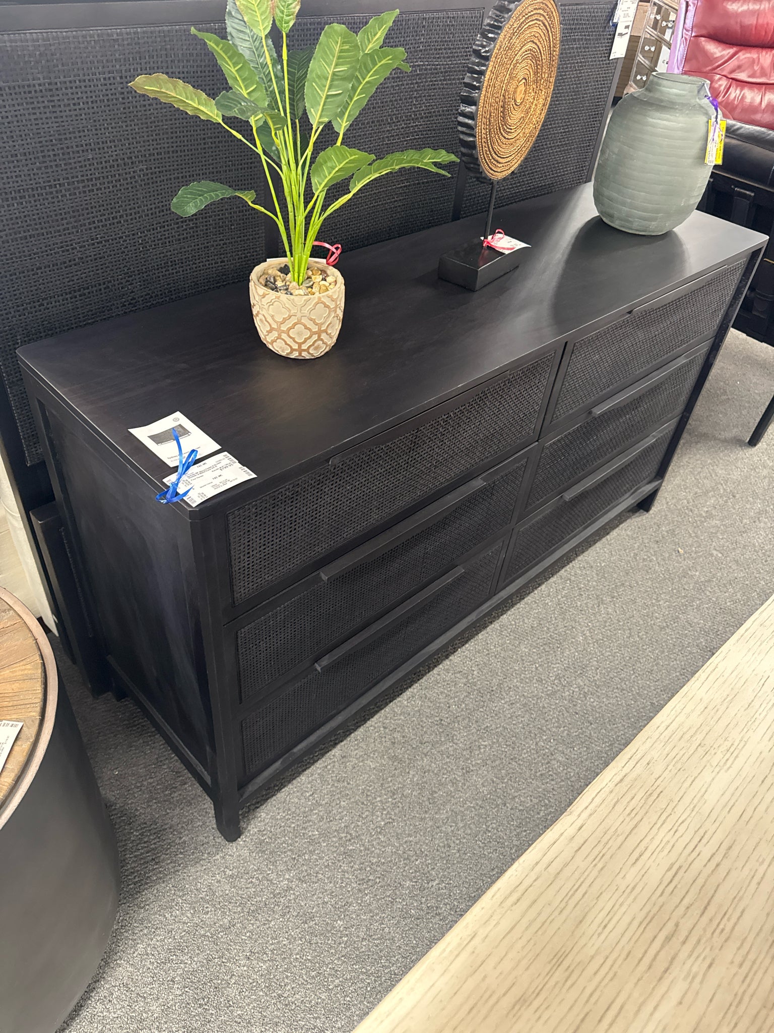 Sydney 58" Black Finish 6-Drawer Dresser w Black Cane AS IS